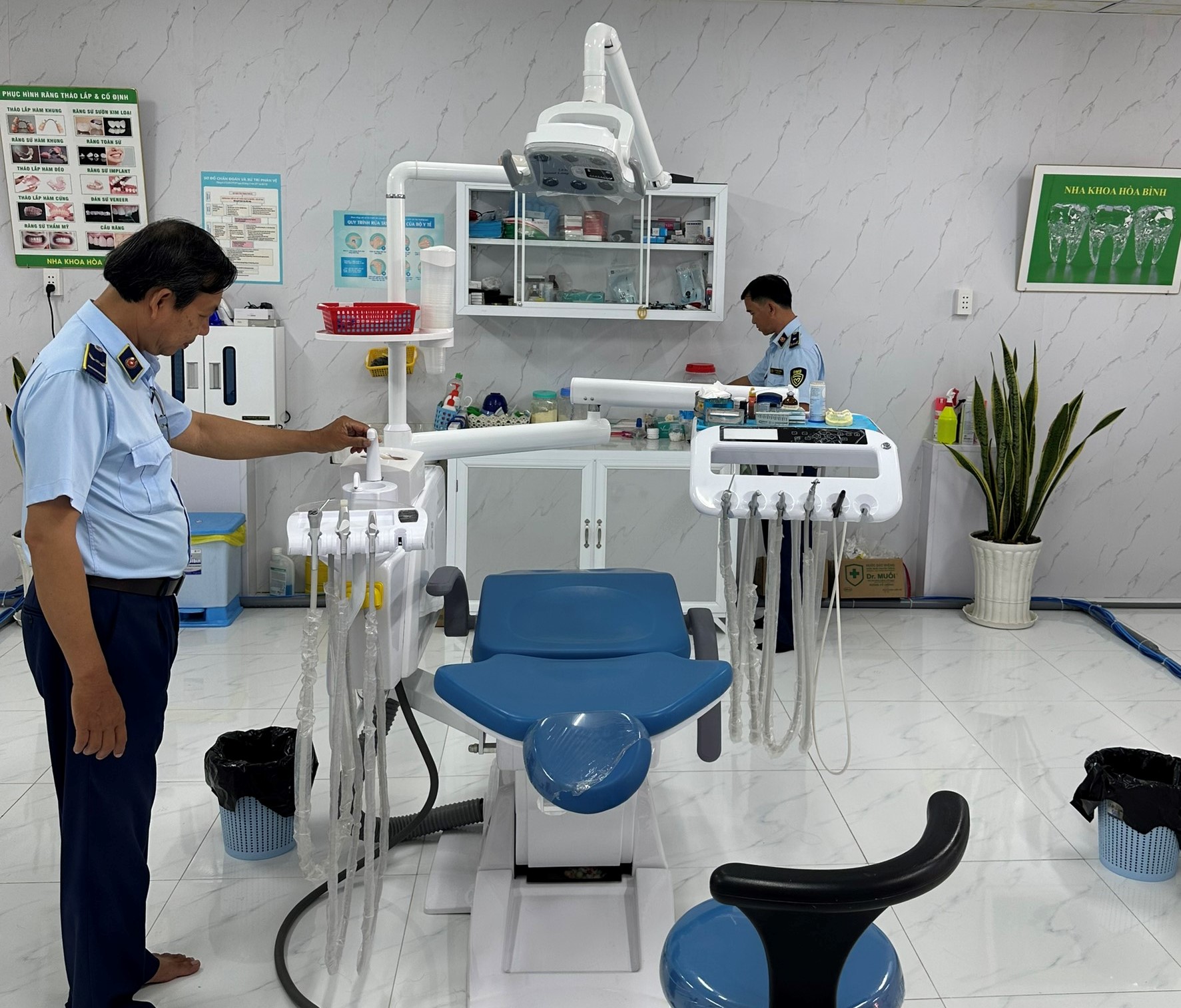 Lực lược chức năng thực hiện kiểm tra tại cơ sở nha khoaĐoàn kiểm tra đã tiến hành lập biên bản và ban hành quyết định xử phạt vi phạm hành chính với hành vi không đăng ký thành lập hộ kinh doanh trong những trường hợp phải đăng ký theo quy định.