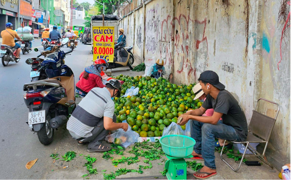 Không chỉ siêu thị, sàn thương mại điện tử, nhiều cửa hàng, quán ăn, tổ chức, cá nhân tại TP. HCM cũng tham gia góp sức tiêu thụ cam sành, ủng hộ bà con tỉnh Vĩnh Long thoát cảnh đổ bỏ nông sản. Tại khắp các nẻo đường, nhiều điểm bán “giải cứu” mới cũng được dựng lên với giá phổ biến 8.000 đồng/kg. Nhiều khách thấy biển “giải cứu” liền tấp lại mua 3-5kg ủng hộ, nhiều người cho biết không phải vì rẻ mà muốn ủng hộ bà con Vĩnh Long. Trên facebook, nhiều hội nhóm nông sản miền Tây, hội nhóm từ thiện… cũng nhộn nhịp các bài đăng kêu gọi hỗ trợ, “giải cứu” cam Vĩnh Long, Bến Tre. Nhiều cá nhân tự nhận bán giùm người nhà giá chỉ từ 6.000 đồng/kg cùng cam kết trái già, chất lượng, mỏng vỏ, ngọt lịm trên các trang mạng xã hội. Dưới bài đăng, nhiều người cũng hưởng ứng nhiệt tình đăng ký mua số lượng lớn, thậm chí nhiều người mua hàng ngoài Bắc cũng sẵn sàng đặt mua với phí vận chuyển cao.