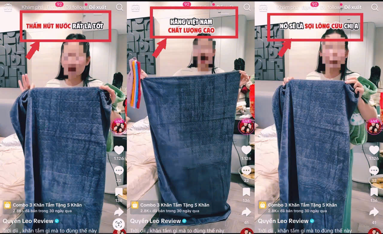 Thực tế, combo bộ 3 sản phẩm khăn tắm Huy Hòa do Nguyễn Lan Anh quảng cáo trên nền tảng mạng xã hội TikTok có dấu hiệu vi phạm các quy định của pháp luật trong việc sản xuất, kinh doanh hàng tiêu dùng, cũng như có chất lượng không đúng như quảng cáo.