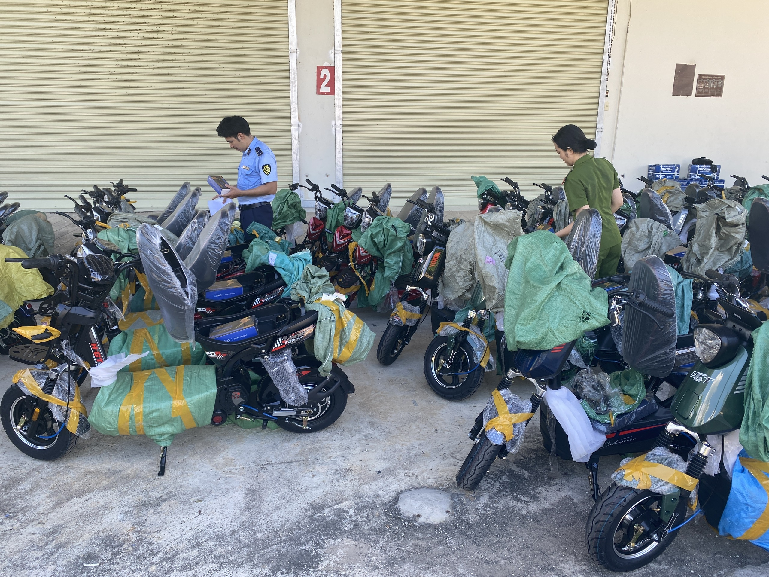 (CHG) Lực lượng chức năng tỉnh Bình Định kiểm tra trên khâu lưu thông, tạm giữ 160 chiếc xe đạp điện, xe máy điện các loại và 1.423 đơn vị sản phẩm phụ tùng xe điện các loại, tổng trị giá hàng hóa tạm giữ gần 01 tỷ đồng.