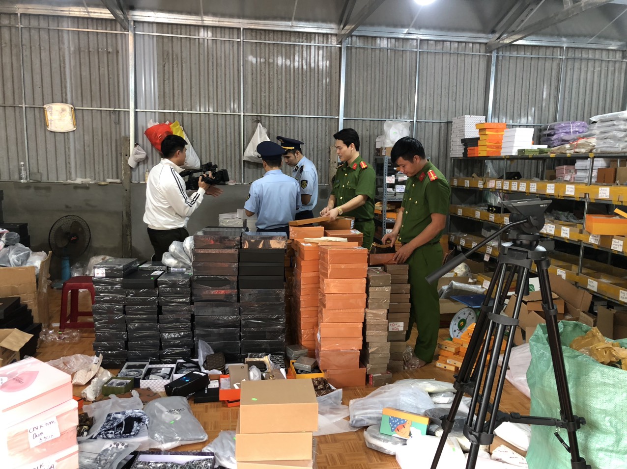 Qua kiểm tra, Đoàn kiểm kiểm tra phát hiện hàng hóa tại đây do nước ngoài sản xuất, không có nhãn phụ bằng tiếng Việt Nam, không có hóa đơn chứng từ, có dấu hiệu giả mạo nhãn hiệu hàng hóa của các thương hiệu được bảo hộ tại Việt Nam, gồm: 554 chiếc túi xách hiệu Hermès, Gucci, Chanel, Charles & Keith, Miu Miu, Yvessaintlaurent/Ysl, Louis Vuitton, Mcm, Prada, 211 chiếc đồng hồ đeo tay hiệu Louis Vuitton, Rolex và 115 chiếc kính mắt hiệu Prada, Chanel. Tổng trị giá hàng hóa là: 105.355.000 đồng.