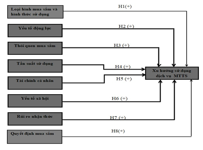 Mô hình nghiên cứu xem xét ảnh hưởng của 8 nhóm nhân tố đến xu hướng sử dụng dịch vụ mua trước, trả sau của người tiêu dùng Việt Nam được đề xuất như Hình 1.