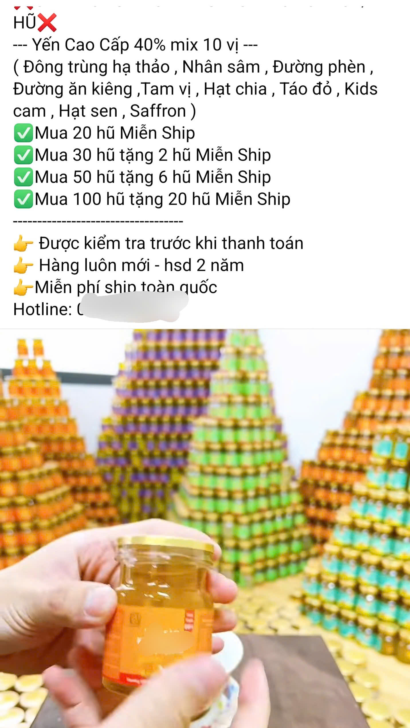Gần đây, nhiều tổ chức và cá nhân bán hàng qua các nền tảng mạng xã hội như Facebook, Zalo, TikTok đang quảng cáo những hũ yến chế biến sẵn với khối lượng tịnh từ 70ml đến 150ml, chưa đến 25%, 30%, 35%, 39%, thậm chí là 50% yến sào, nhưng giá bán chỉ dao động từ 12 nghìn đồng cho đến 25 nghìn đồng. Đây là mức giá vô cùng hấp dẫn so với các sản phẩm yến chất lượng trên thị trường, khi giá của một hũ yến nguyên chất có thể lên đến hàng trăm nghìn đồng đến vài triệu đồng tùy thuộc vào nguồn gốc và chất lượng.