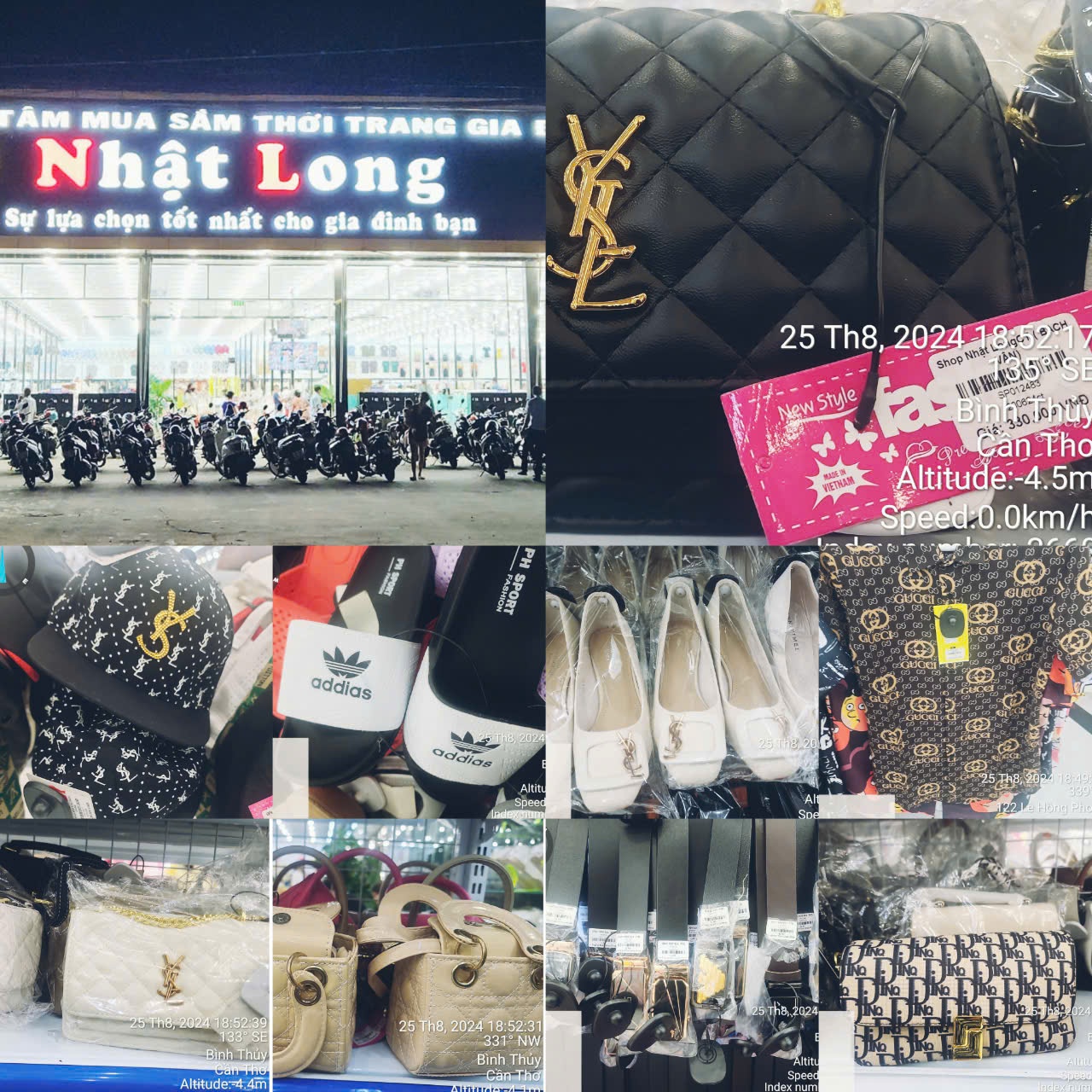 Hàng hóa có dấu hiệu giả mạo nhãn hiệu nổi tiếng đã được đăng ký bảo hộ tại Việt Nam như: YSL, Dior, Adidas, Gucci,... vẫn được bày bán công khai trên quầy, kệ tại Trung tâm mua sắm thời trang gia đình Nhật Long (Ảnh ngày 25/08/2024).