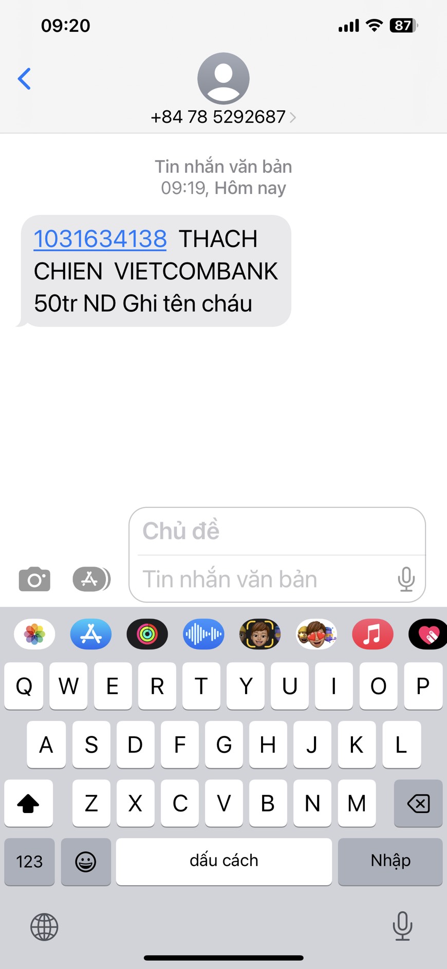 Nội dung tin nhắn phụ huynh nhận được để chuyển tiền.