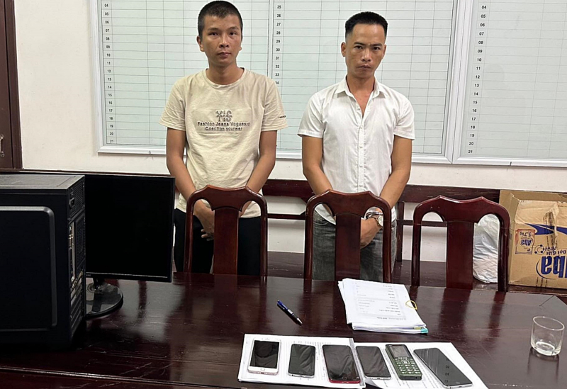 2 đối tượng lừa đảo cùng tang vật.