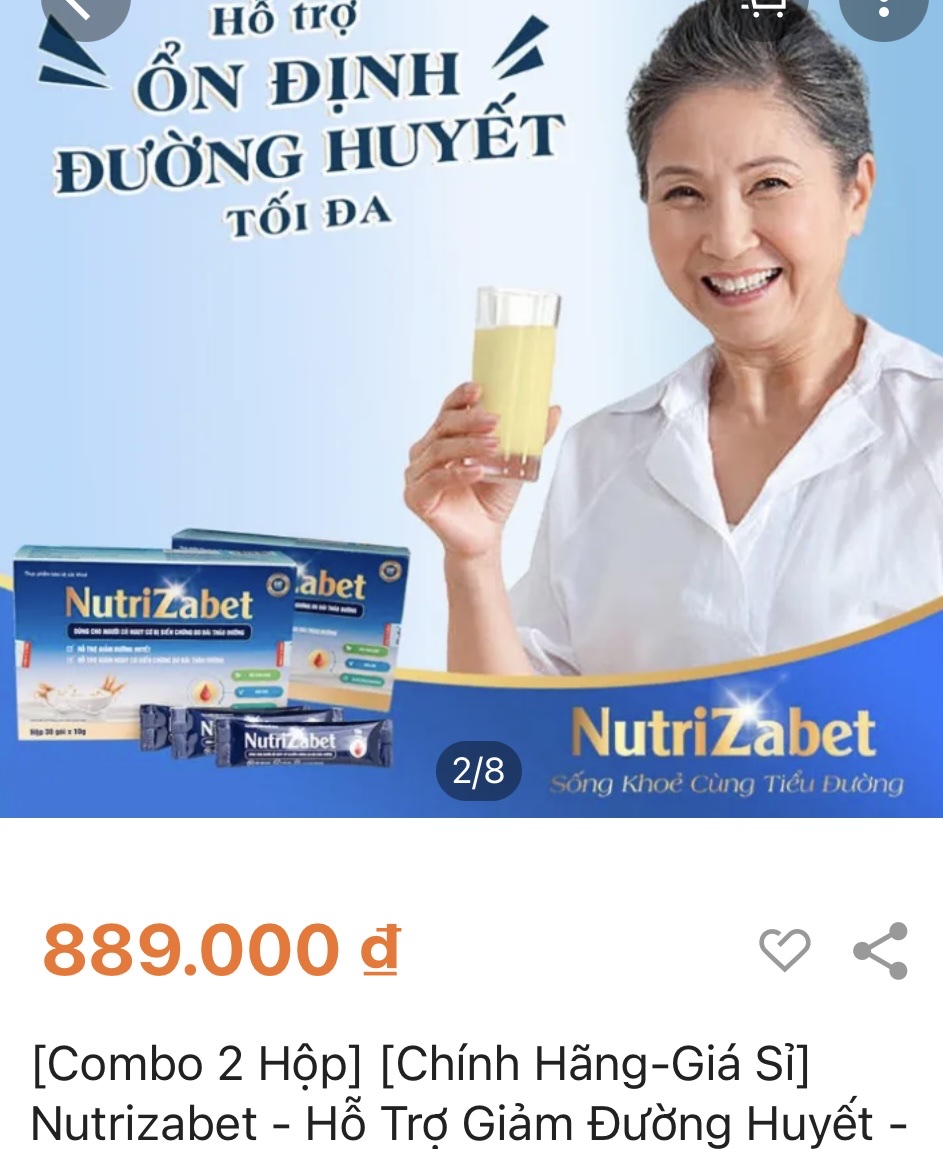 Quảng cáo thực phẩm sức khoẻ Nutrizabet trên các mạng xã hội sai sự thật.