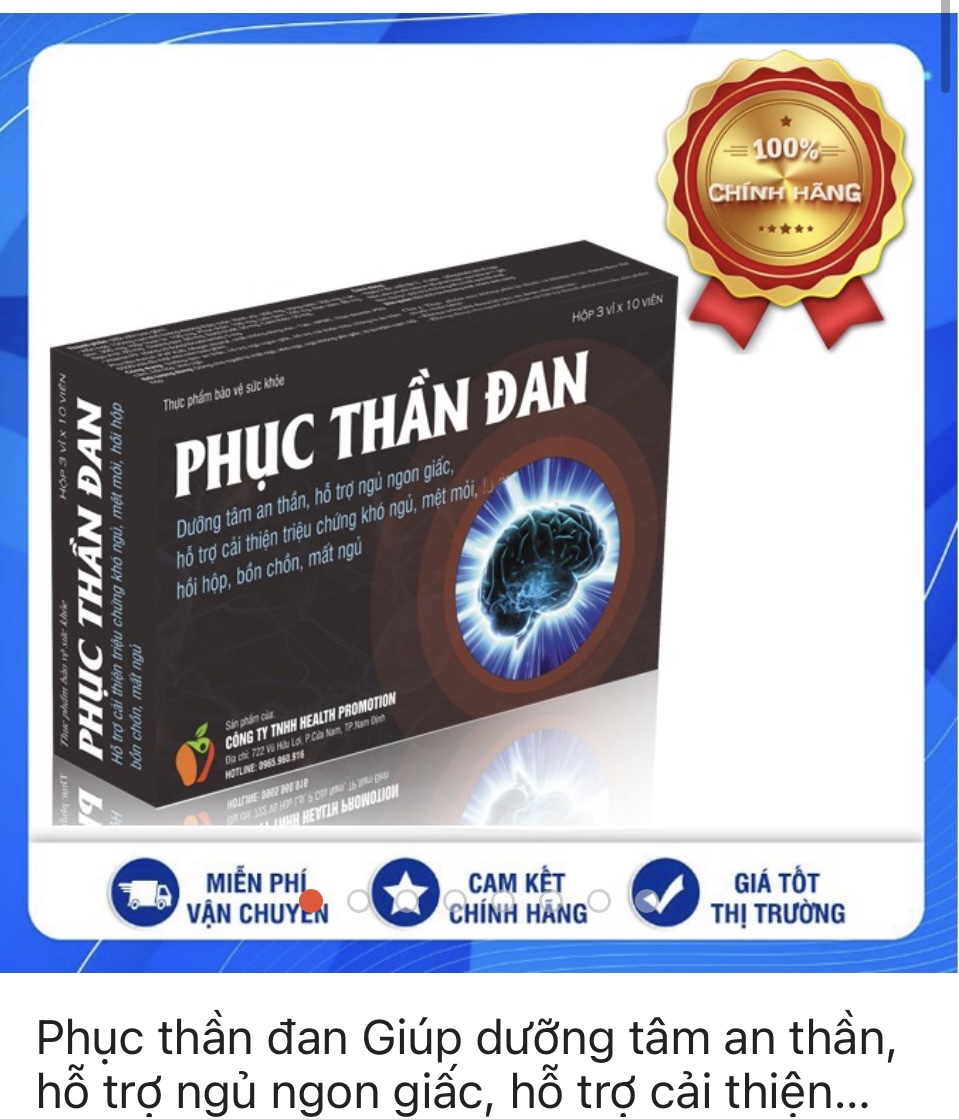 Thực phẩm bảo vệ sức khoẻ Phục Thần Đan do Công ty TNHH Health Promotion (số 722 đường Vũ Hữu Lợi, xã Nam Vân, TP. Nam Định, tỉnh Nam Định) công bố và chịu trách nhiệm sản phẩm.