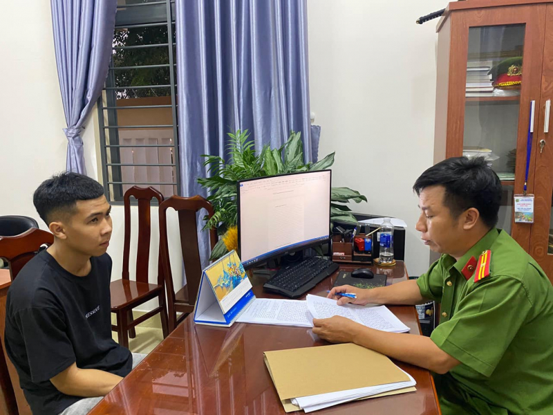 Đối tượng Nguyễn Đình Hậu khai nhận hành vi phạm tội với cán bộ điều tra.