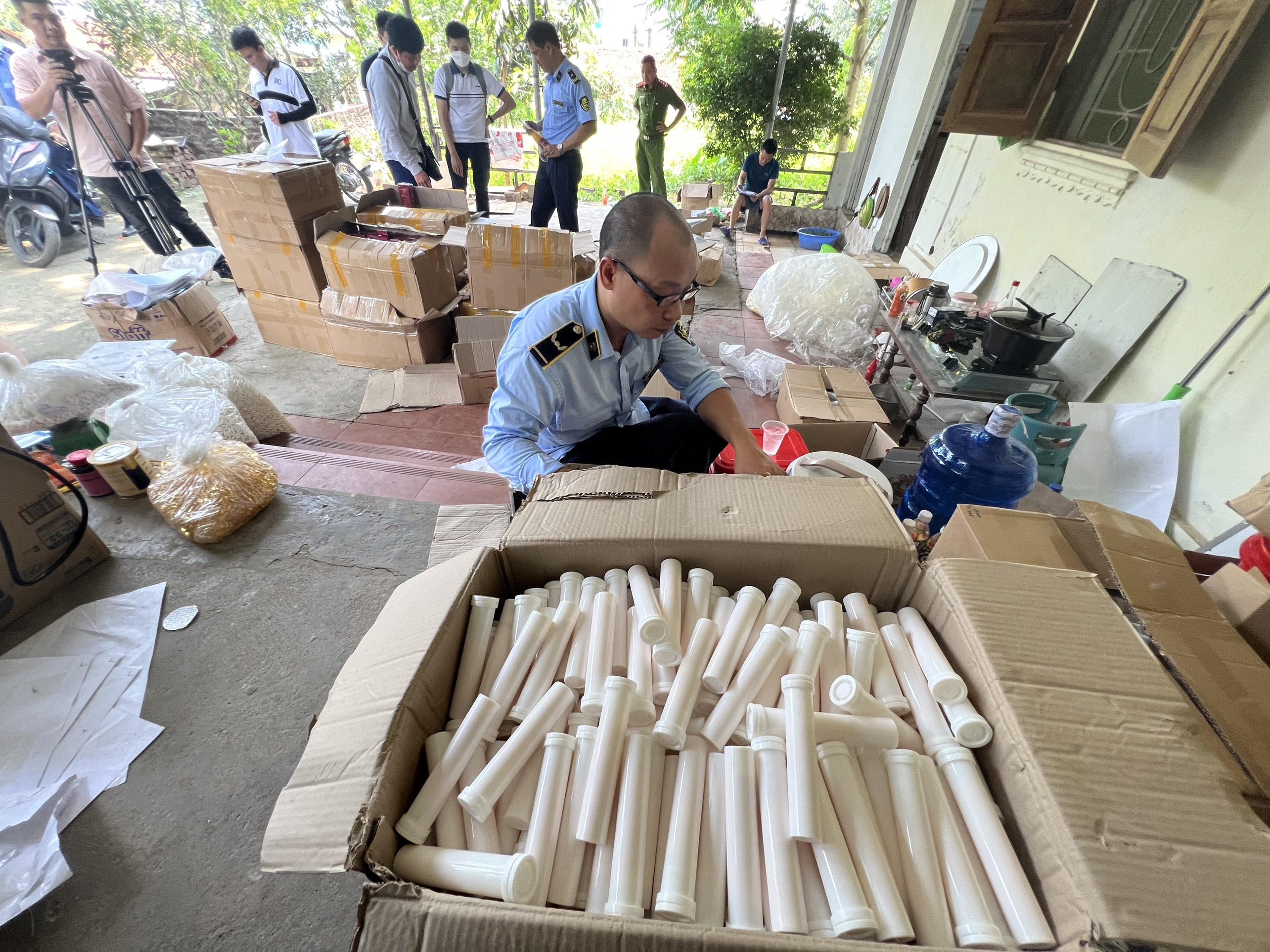 Liên quan tới vụ việc, trước đó ngày 31/5, Đoàn kiểm tra do Đội QLTT số 1, Cục QLTT TP. Hà Nội chủ trì, phối hợp với Đội QLTT số 25 và Đội Cảnh sát kinh tế - Công an huyện Chương Mỹ tiến hành kiểm tra đột xuất tại căn nhà cấp 4 ở thôn Cao sơn, xã Tiên Phương, huyện Chương Mỹ, Hà Nội.