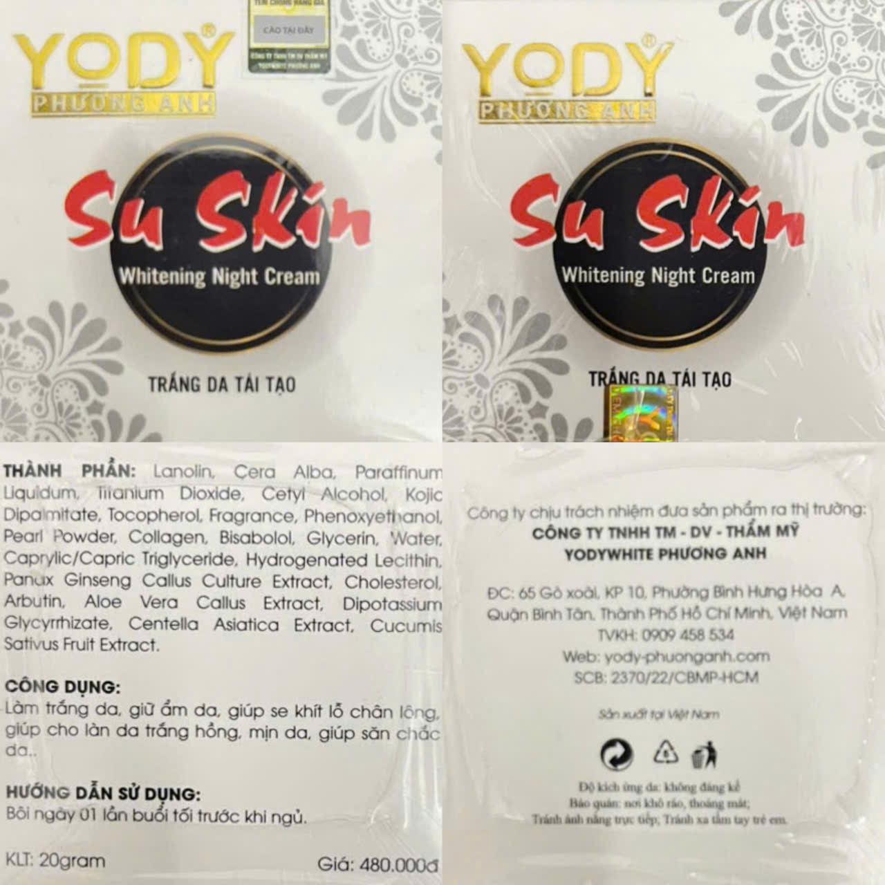 Mỹ phẩm Su Skin Whitening Night Cream do Công ty TNHH TM- DV- Thẩm mỹ Yodywhite Phương Anh chịu trách nhiệm đưa sản phẩm ra thị trường.