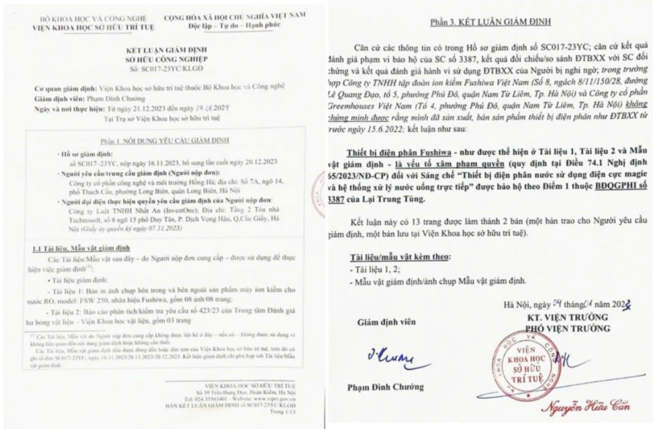 (CHG) Ngày 30 tháng 09 năm 2024, Thanh tra Bộ Khoa học và Công nghệ đã ban hành kết luận thanh tra đối với hành vi vi phạm của Công ty Fushiwa Việt Nam. Bản kết luận này một lần nữa khẳng định công ty này đã có hành vi xâm phạm quyền đối với giải pháp hữu ích mang tên “thiết bị điện phân nước và hệ thống xử lý nước uống trực tiếp” của Công ty Hồng Hà. Đây là một sự kiện đáng chú ý, không chỉ bởi tính chất nghiêm trọng của hành vi vi phạm, mà còn vì những tác động sâu rộng mà nó mang lại cho môi trường đổi mới và sáng tạo trong nền kinh tế Việt Nam.