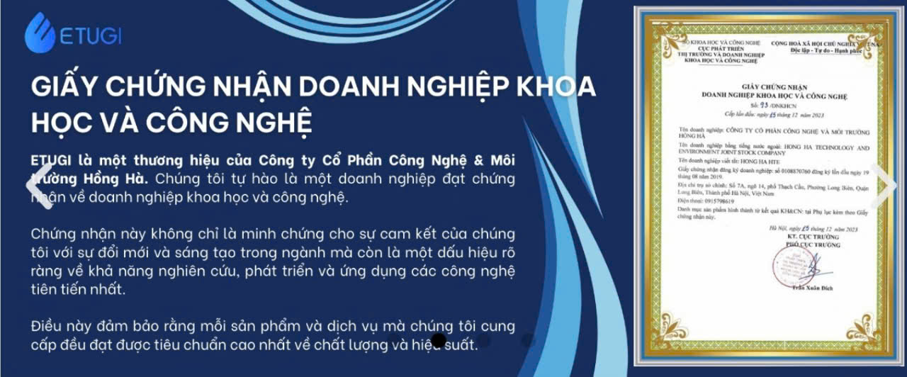 Giấy Chứng nhận Khoa học và Công nghệ.