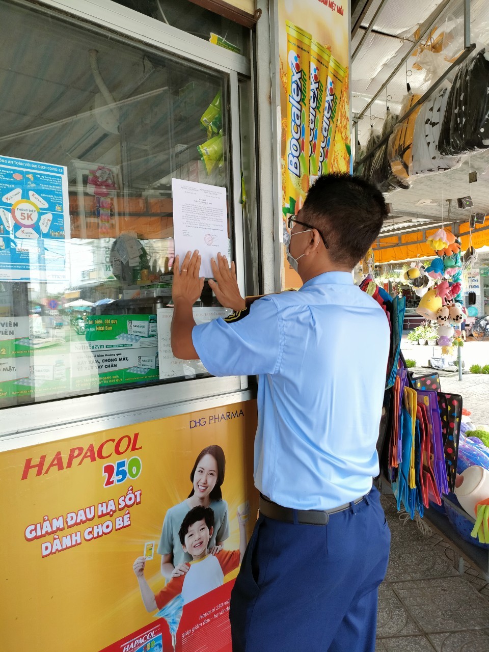 Nhận được thông tin phản ánh qua số điện thoại đường dây nóng vào ngày 20/7/2021, Đội QLTT số 2 phối hợp với UBND phường Thới Long tiến hành kiểm tra, xử lý hành vi vi phạm không niêm yết giá mặt hàng khẩu trang đối với Hộ kinh doanh thuốc tân dược trên địa bàn quận Ô Môn, số tiền 750.000 đồng.