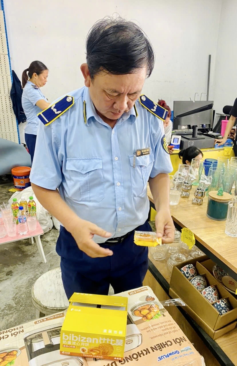 Tại thời điểm kiểm tra, Đội QLTT số 3 phát hiện Hộ kinh doanh N.L đang kinh doanh gần 1.800 cái bánh trung thu các loại gồm: Bánh trung thu phomai Bibizan, Bánh trung thu hồng trứng muối Bibizan, Bánh trung thu trứng chảy Bibizan, Bánh trung thu Chaosan Snack có xuất xứ Trung Quốc, được nhập khẩu và đang lưu thông tại thị trường Việt Nam nhưng không có hóa đơn, chứng từ hợp pháp kèm theo.
