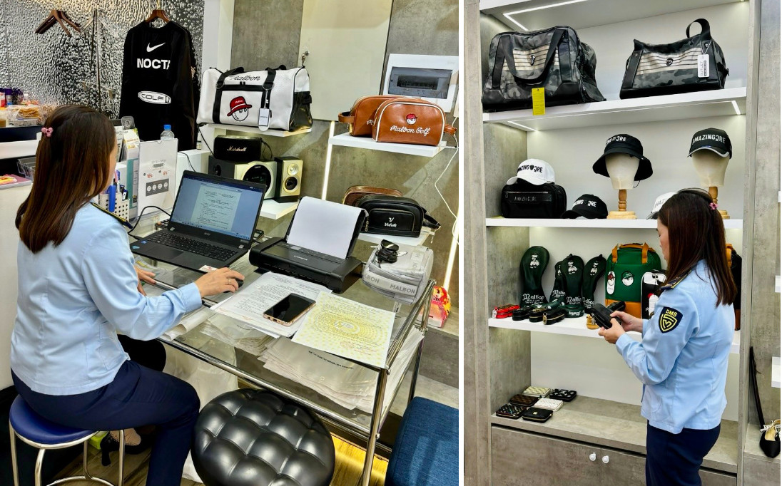 Qua kiểm tra thực tế tại các đơn vị, Đoàn kiểm tra phát hiện 05 tổ chức, cá nhân có dấu hiệu đang trưng bày để bán hàng hóa giả mạo các nhãn hiệu nổi tiếng đang được bảo hộ tại Việt Nam và lập biên bản tạm giữ toàn bộ tang vật có dấu hiệu vi phạm để xác định hành vi vi phạm.