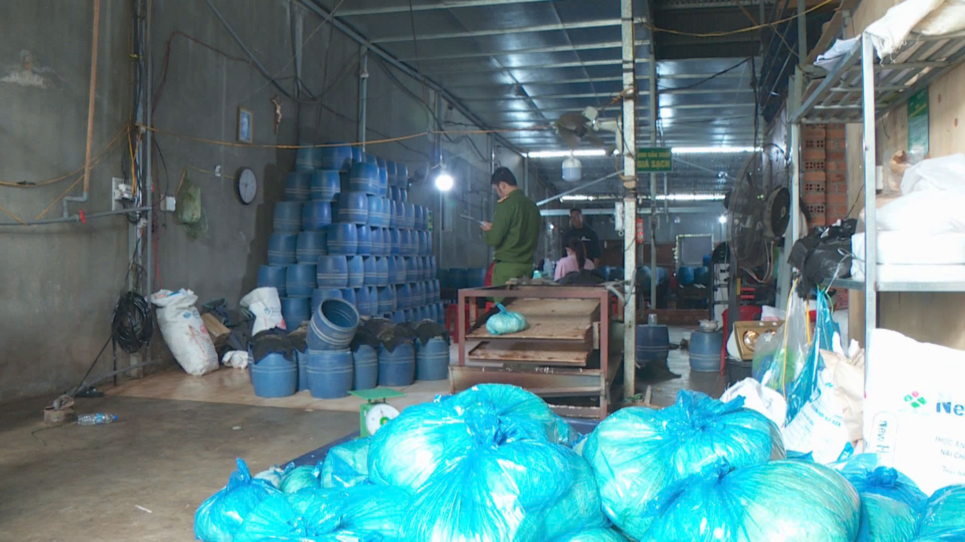 Lực lượng chức năng đang kiểm tra kho, bãi nơi sản xuất đỗ.