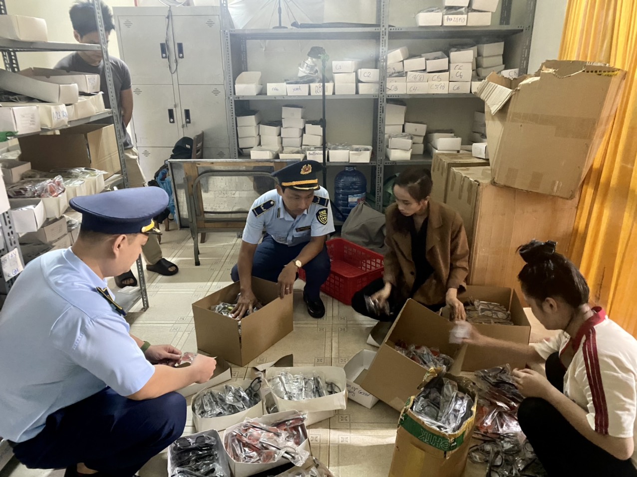 Kiểm tra thực tế hàng hóa cho thấy bà D.M.P đang bày bán 700 sản phẩm mắt kính thời trang không rõ nguồn gốc, xuất xứ với tổng giá trị 35 triệu đồng.
