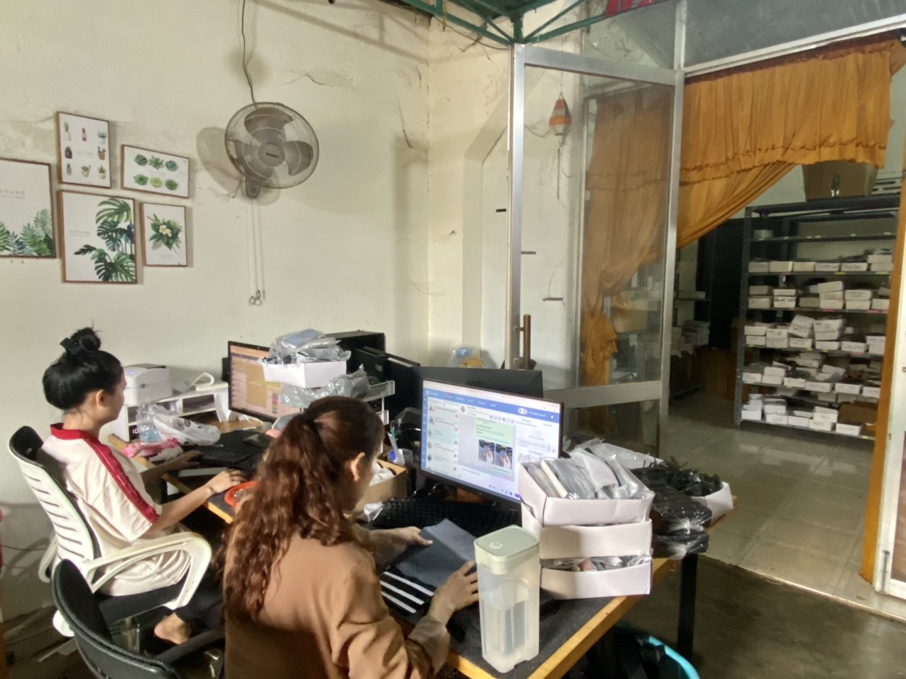 Nhân viên của shop đang chốt đơn cho khách mua online trên các sàn thương mại điện tử Shopee, Tiktok và trang Facebook.