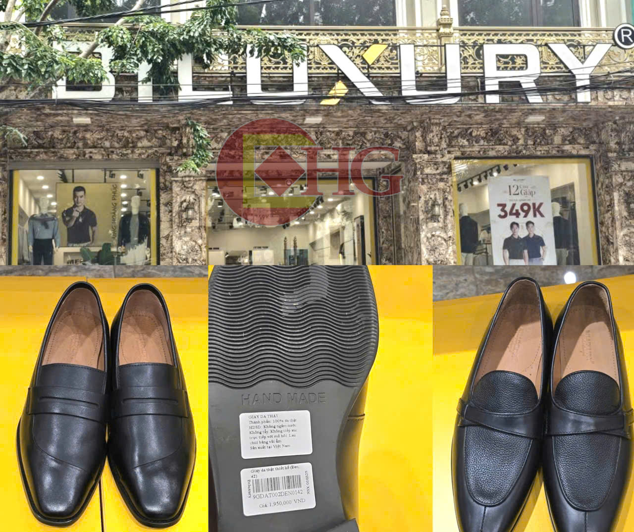 Dấu hiệu vi phạm trong việc ghi nhãn hàng hoá của sản phẩm giày và cà vạt tại cửa hàng thời trang mang thương hiệu Biluxury tại 337 đường Cầu Giấy, thành phố Hà Nội.