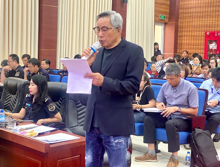 Đại diện Công ty TNHH HHH Việt Nam nêu vướng mắc tại hội nghị.
