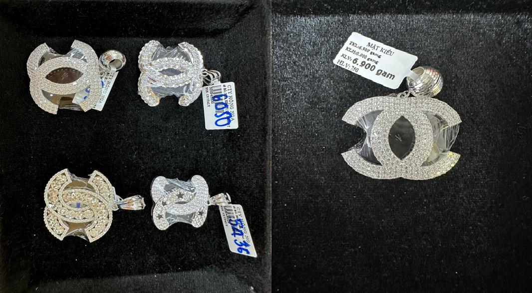 Lực lượng chức năng kiểm tra tại Doanh nghiệm kinh doanh sản phẩm trang sức..,Tại thời điểm kiểm tra, phát hiện có 3 Doanh nghiệp kinh doanh sản phẩm trang sức gồm lắc tay, vòng tay, bông tai, nhẫn, mặt dây chuyền đều là kim loại màu vàng, kim loại màu trắng có gắn các yếu tố có dấu hiệu giả mạo nhãn hiệu đối với sản phẩm mang nhãn hiệu đăng ký quốc tế được bảo hộ tại Việt Nam bởi chủ sở hữu đăng ký quốc tế: CHANEL (địa chỉ: 135, avenue Charles de Gaulle F-9220 NEUILLY-SUR-SEINE France), thuộc Danh mục hàng hóa và dịch vụ được bảo hộ tại Việt Nam: Nhóm 14, số lượng tang vật 11 sản phẩm, tổng trị giá tang vật gần 85 triệu đồng.