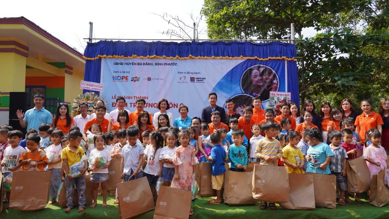Ngày 30/3, Quỹ Người FPT vì cộng đồng thuộc Tập đoàn FPT phối hợp với Quỹ Hy vọng khánh thành điểm trường Thôn 6 - Trường Mầm non Hoa Mai và trao tặng quà là thiết bị học tập cho 200 học sinh Trường Tiểu học Tô Vĩnh Diện, tại huyện Bù Đăng, tỉnh Bình Phước.