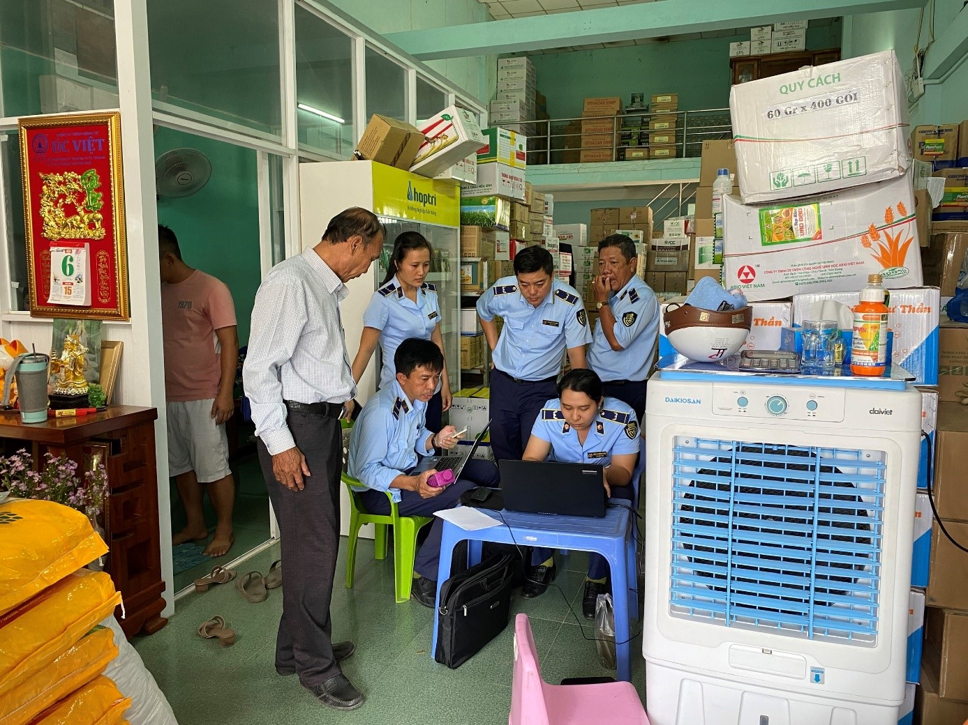 Lực lượng quản lý thị trường đang kiểm tra hàng hóa vi phạm.Từ ngày 23/3 - 12/4, Đội Quản lý thị trường số 4, Cục Quản lý thị trường tỉnh An Giang đã chủ trì, phối hợp với Trạm Trồng trọt và Bảo vệ thực vật huyện An Phú tiến hành kiểm tra 3 cơ sở kinh doanh phân bón, thuốc bảo vệ thực vật trên địa bàn.