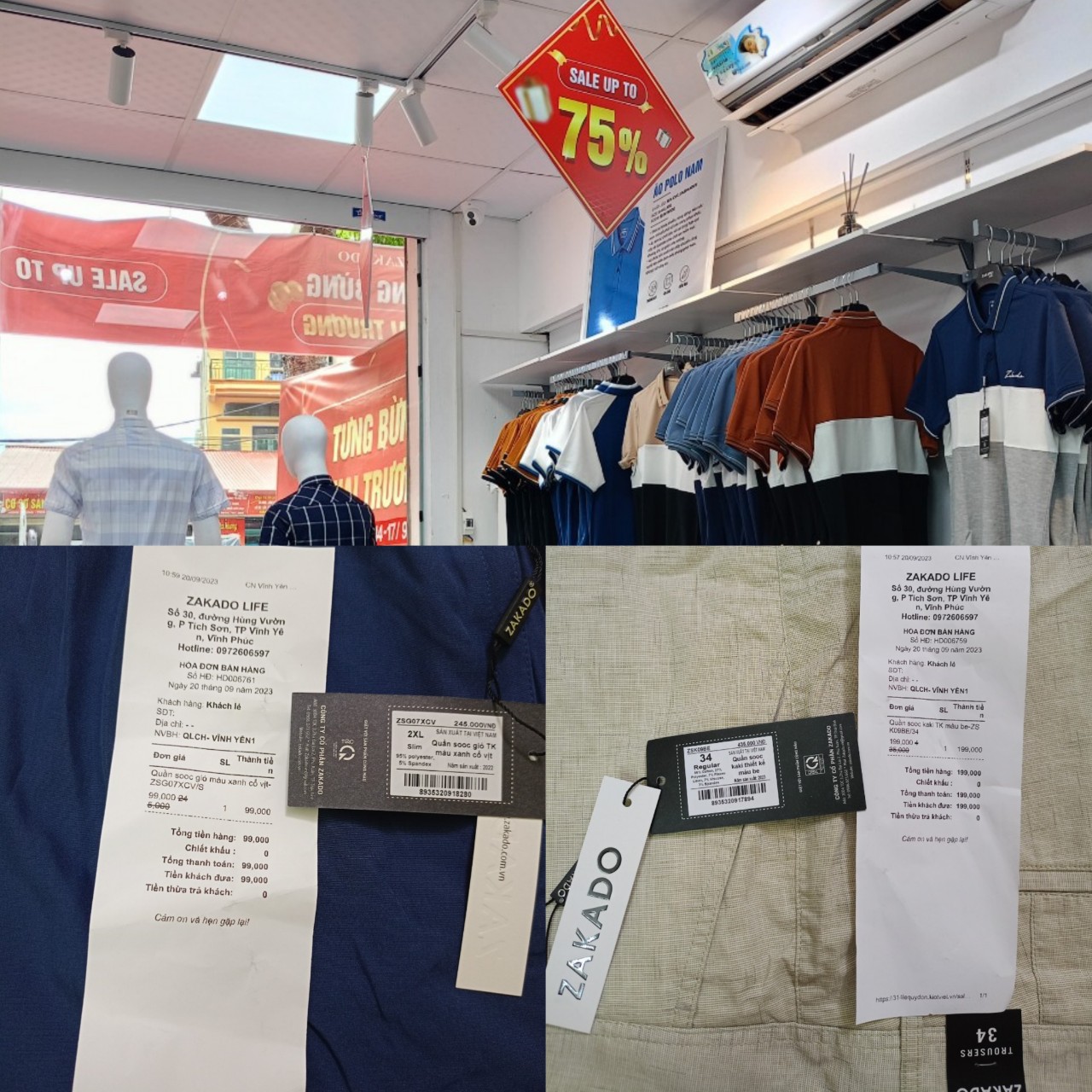 Cửa hàng mang thương hiệu thời trang ZaKaDo số 30 Hùng Vương, thành phố Vĩnh Yên, tỉnh Vĩnh Phúc, công khai ghi khuyến mại một số sản phẩm tới 75% giá so với nhãn gốc của một số sản phẩm.