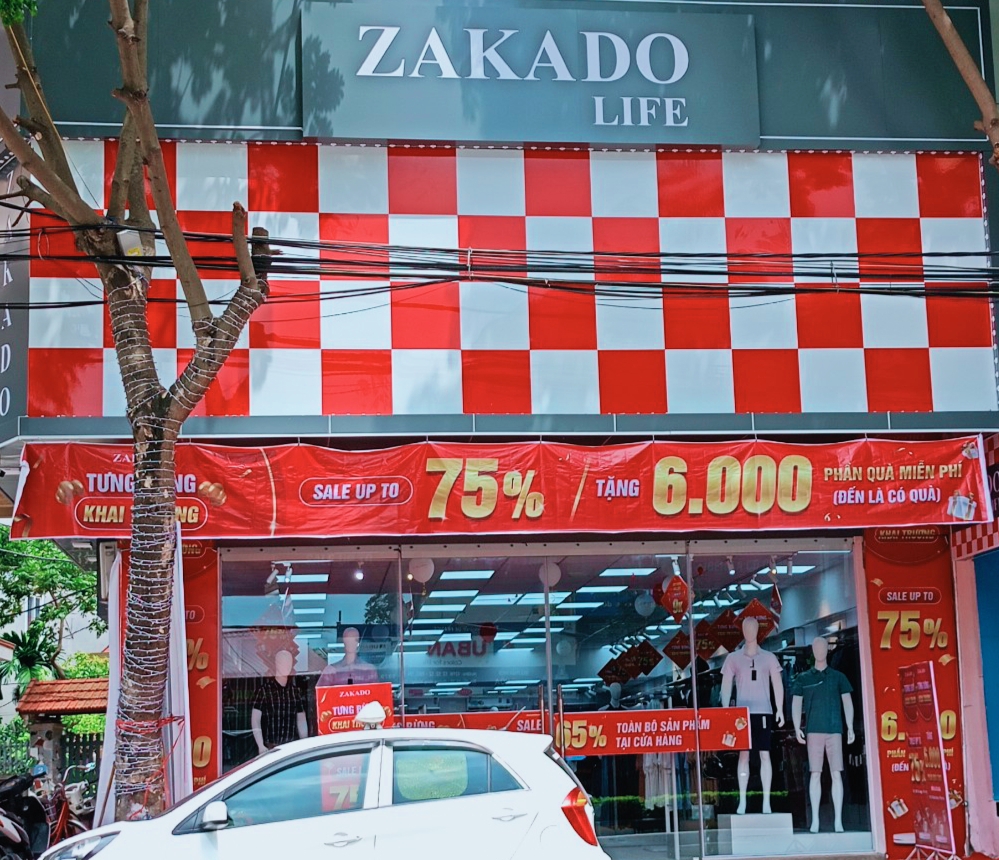 (CHG) Trên biển hiệu của cửa hàng mang thương hiệu thời trang ZaKaDo (số 30 Hùng Vương, thành phố Vĩnh Yên, tỉnh Vĩnh Phúc) công khai các chương trình khuyến mại giảm giá tối đa tới 75%, vì thế người tiêu dùng nơi đây nghi ngờ về giá trị thực, cũng như chất lượng các sản phẩm của hãng thời trang này.