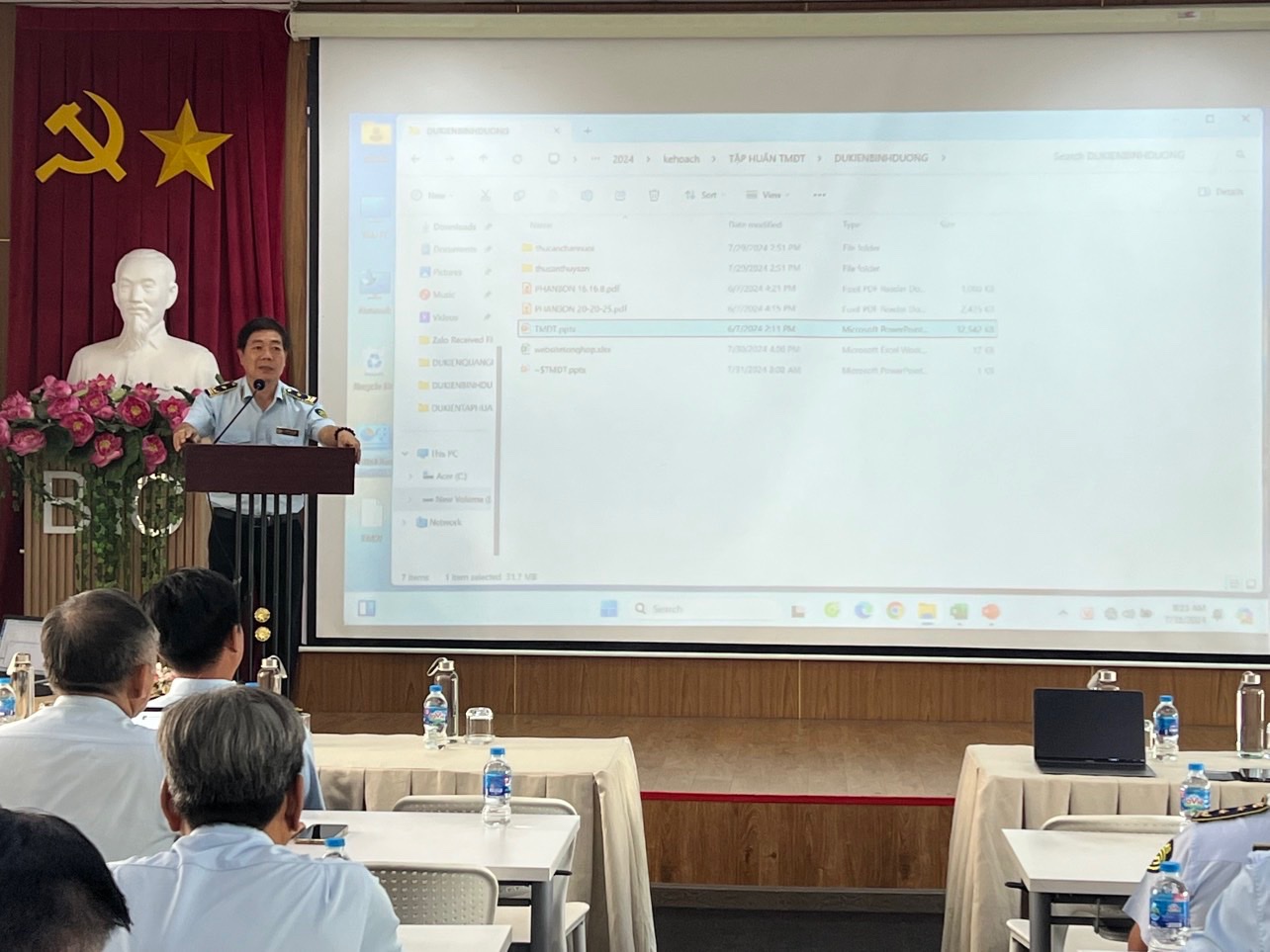 Ông Nguyễn Việt Dũng, Phó Cục trưởng Cục QLTT tỉnh Bình Dương phát biểu tại Hội nghị tập huấn nghiệp vụ phòng, chống vi phạm trong thương mại điện tử.