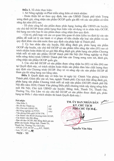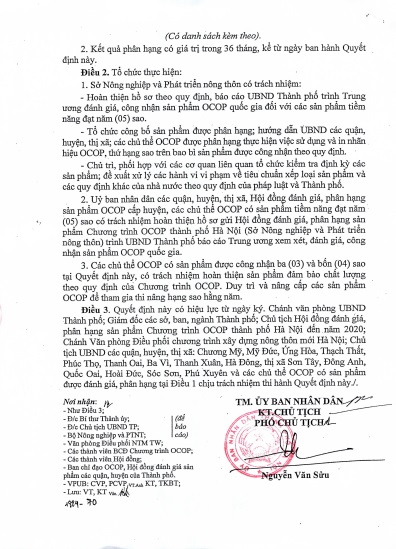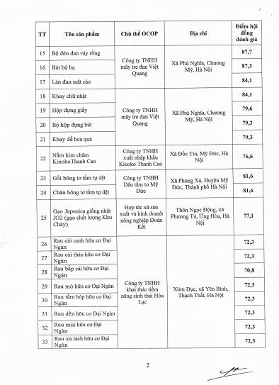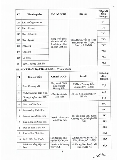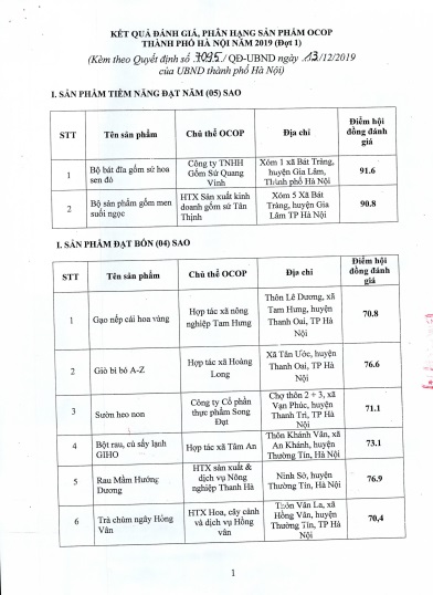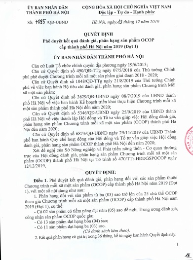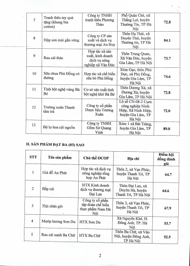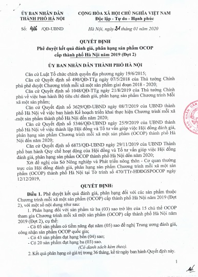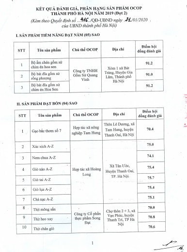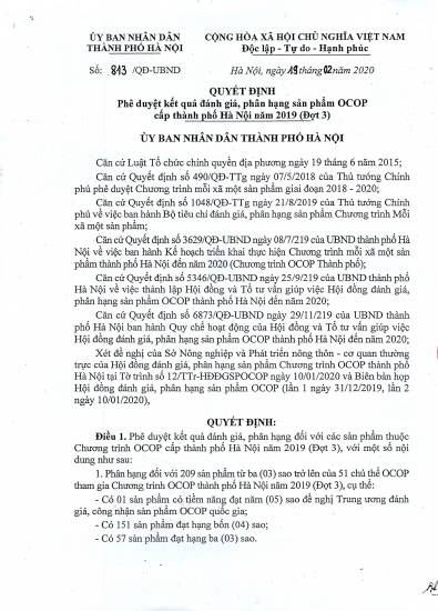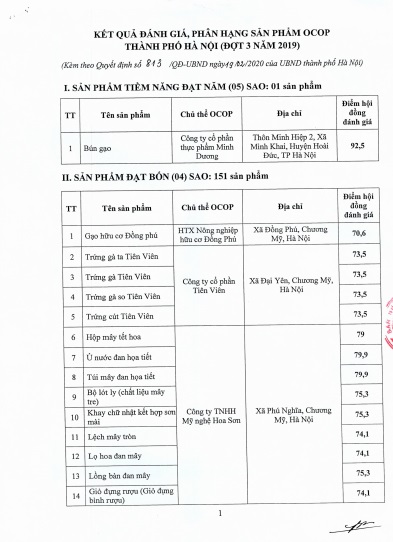 Vừa qua, UBND TP. Hà Nội đã ban hành quyết định cộng nhận 301 sản phẩm OCOP năm 2019 cho 301 sản phẩm. Kết quả đánh giá, phân hạng sản phẩm OCOP năm 2019 ghi nhận: Hà Nội có 18/30 quận, huyện, thị xã tham gia, với số hồ sơ tham dự Chương trình OCOP là 301. Trong đó, 6 sản phẩm đạt tiềm năng 5 sao, 207 sản phẩm 4 sao, 88 sản phẩm 3 sao, vượt kế hoạch được đặt ra về Chương trình OCOP của thành phố năm 2019.
