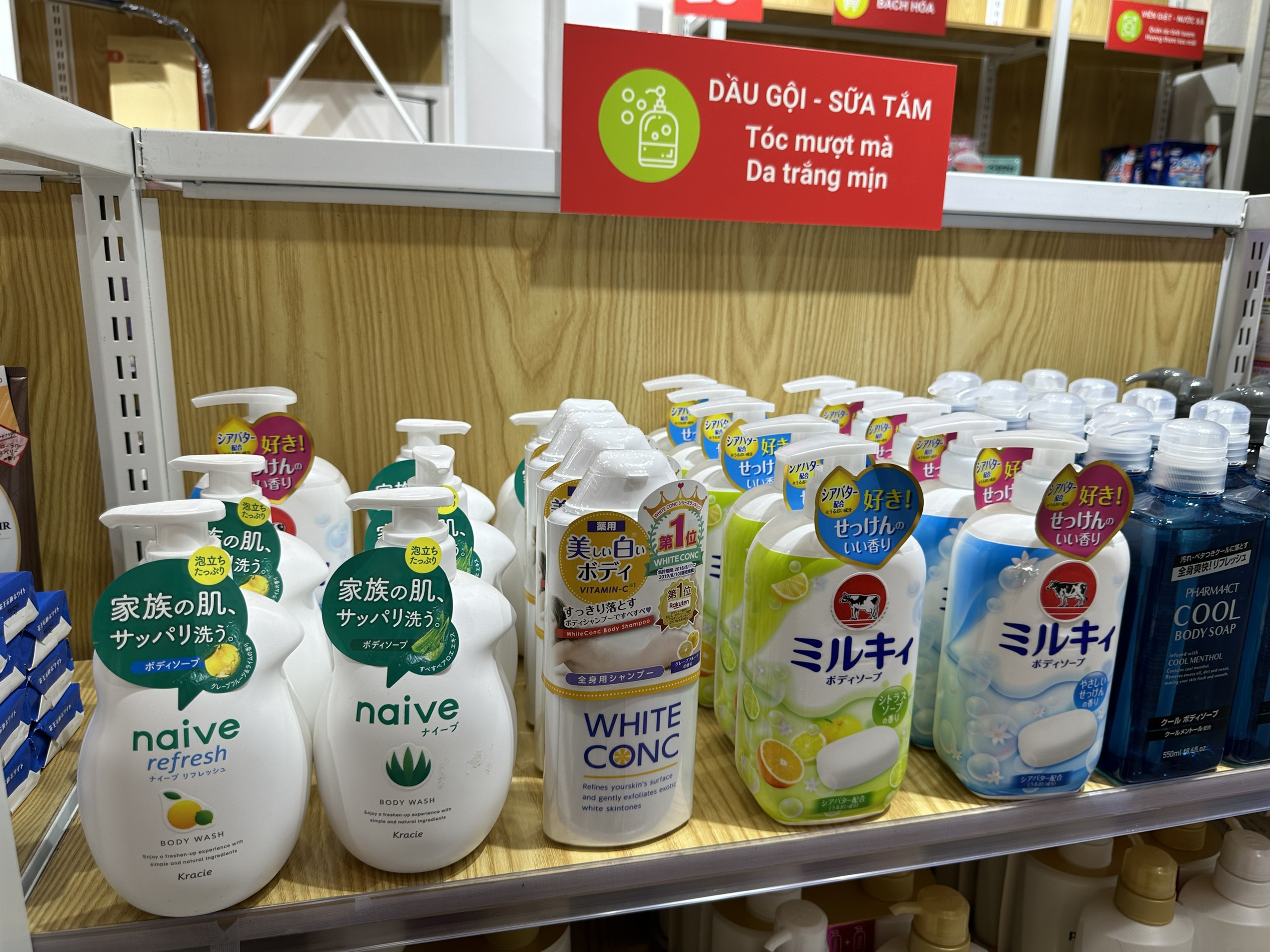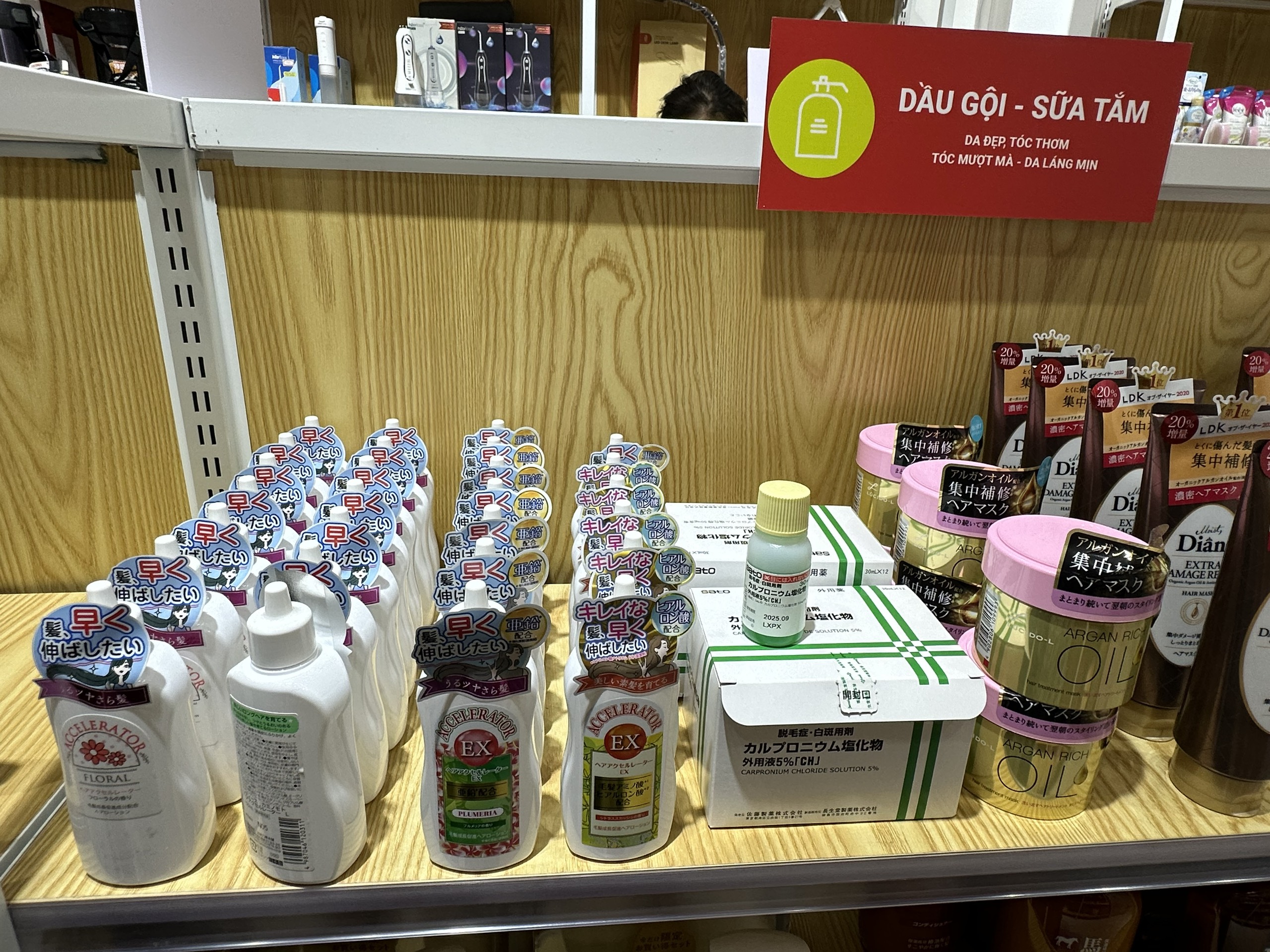 Dầu gội, sữa tắm, mỹ phẩm,… cũng không có nhãn phụ tiếng Việt mà chỉ có chữ nước ngoài.Có thể thấy, rất nhiều sản phẩm bày bán tại Nhật Quang shop ở cả 2 cơ sở, trên bao bì chỉ có chữ nước ngoài mà không hề có nhãn phụ tiếng Việt theo quy định của pháp luật. Không chỉ gây khó khăn cho người tiêu dùng khi tìm hiểu thông tin của sản phẩm, thậm chí còn có thể gây nguy hại đến sức khoẻ nếu như không hiểu và sử dụng đúng sản phẩm. Vậy việc kinh doanh của Nhật Quang shop đã đúng theo quy định của pháp luật hay chưa? Liệu lợi ích của người tiêu dùng có được đảm bảo khi mà thông tin sản phẩm vẫn còn mập mờ?
