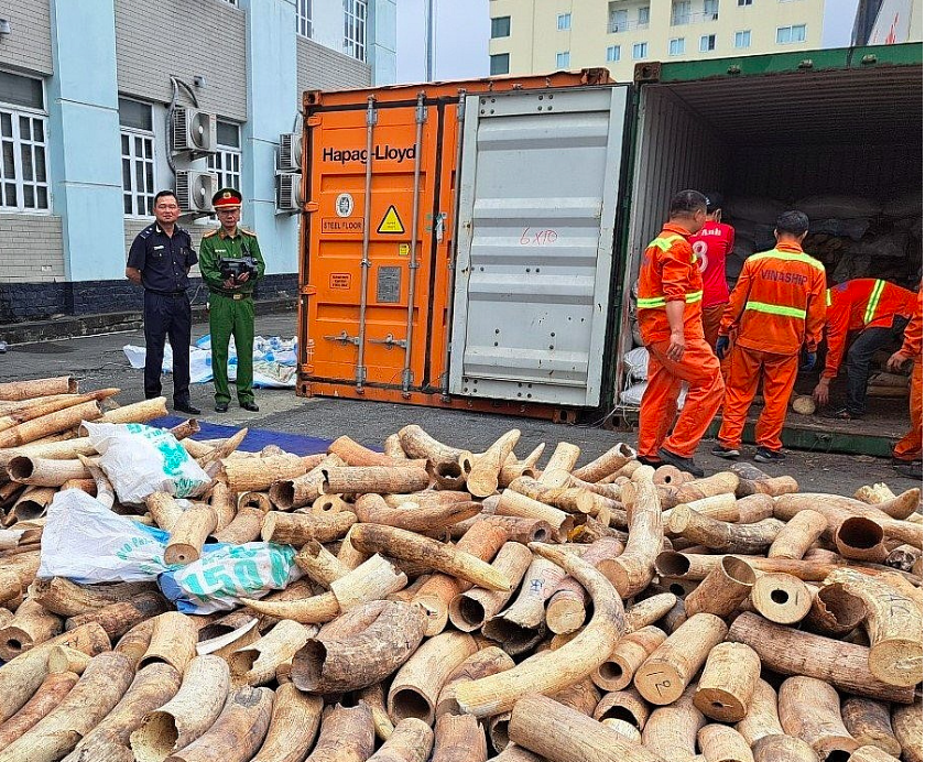 Cũng liên quan đến ngà voi, ngày 20/3/2023, Cục Hải quan Hải Phòng đã kiểm tra và phát hiện hơn 7 tấn ngà voi đóng trong 3 container nhập khẩu, được ngụy trang với “vỏ bọc” lạc nhân.