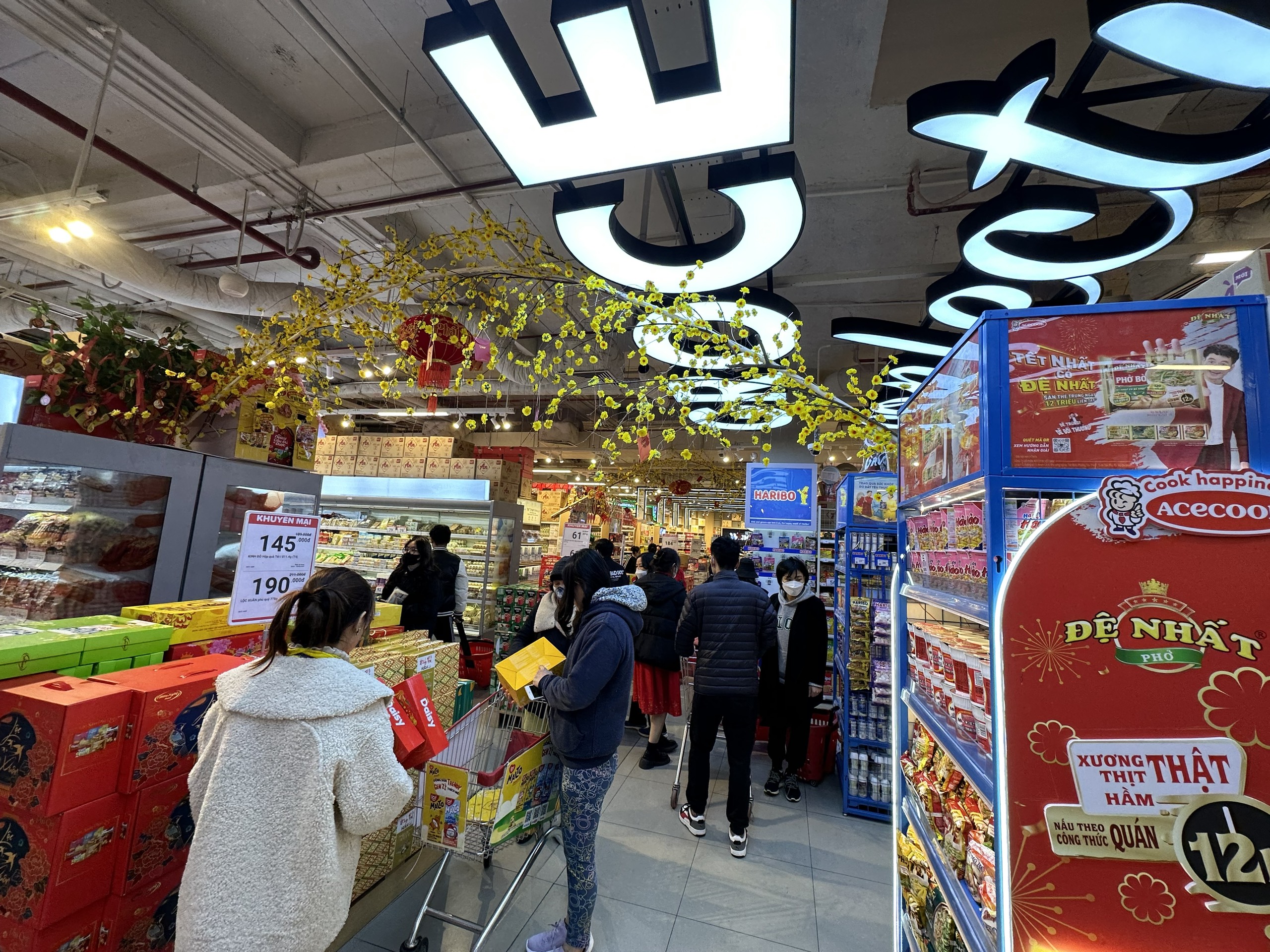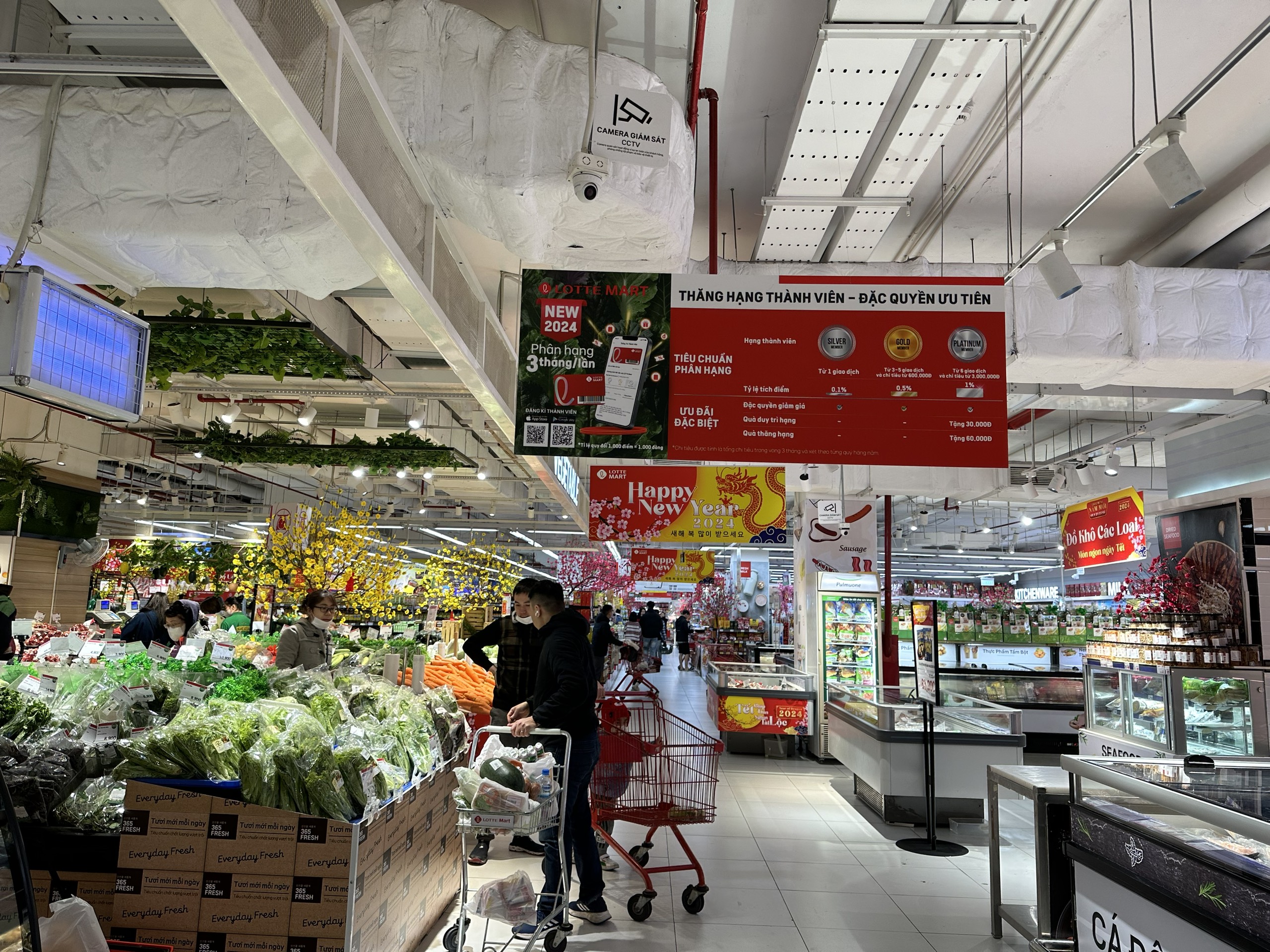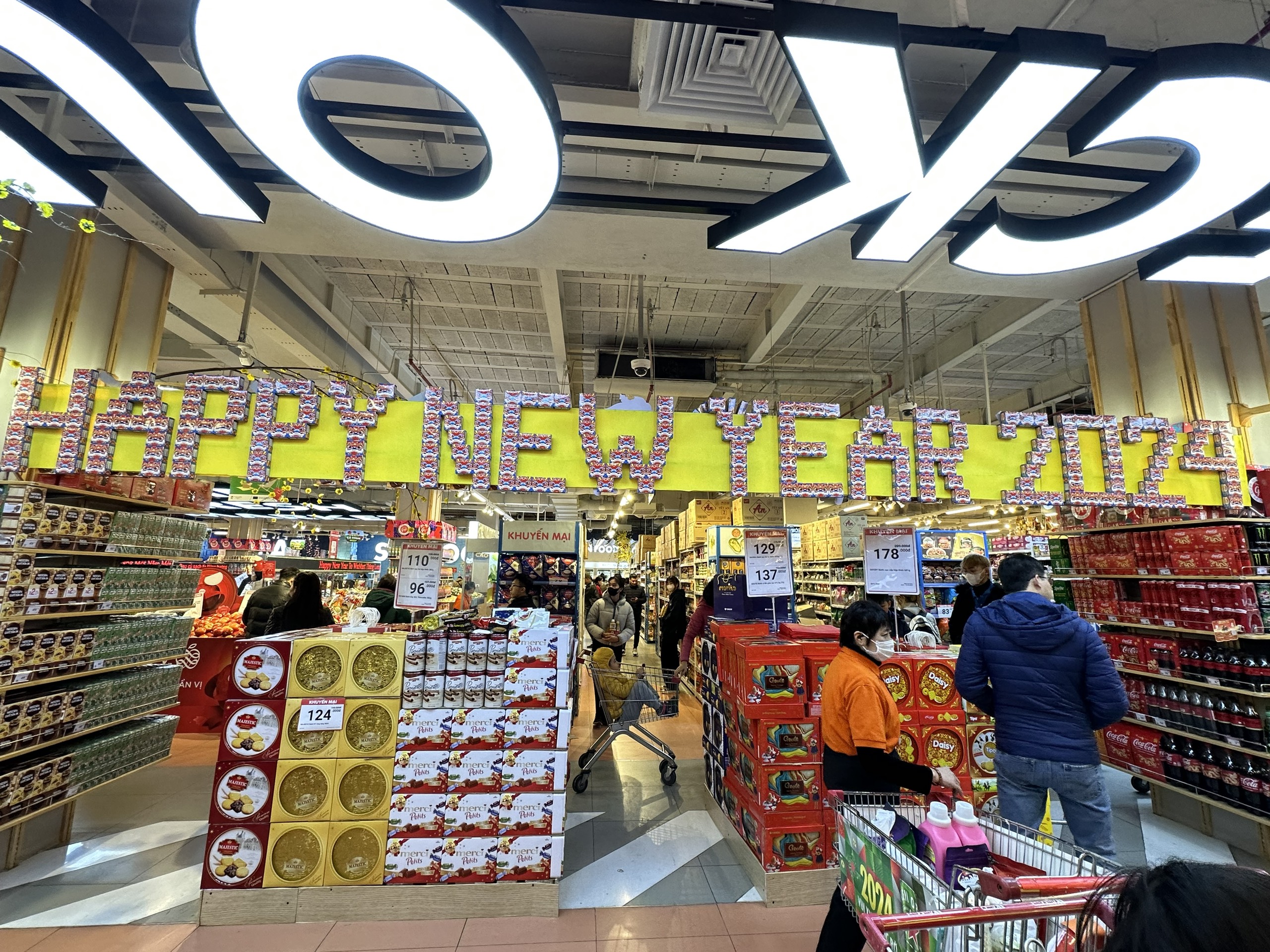 (CHG) Chỉ còn ít ngày nữa là đến Tết Nguyên Đán Giáp Thìn 2024, thời điểm này các siêu thị cũng tung ra nhiều chương trình khuyến mãi, giảm giá vì vậy thu hút được lượng lớn người tiêu dùng đến mua sắm.