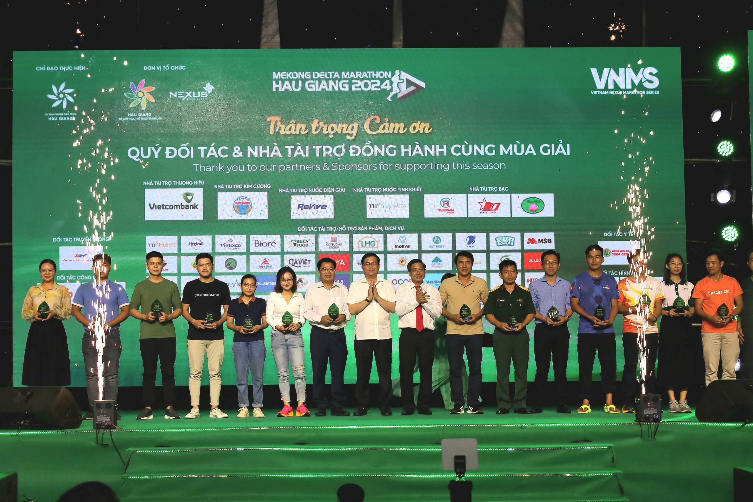 Bí thư tỉnh ủy Hậu Giang Nghiêm Xuân Thành tặng Hoa và kỷ niệm chương cho hai nhà tài trợ (thương hiệu và kim cương)Là đơn vị đồng hành qua 5 mùa giải, ông Đặng Hoài Đức, Phó Tổng Giám đốc Ngân hàng TMCP Ngoại thương Việt Nam – Vietcombank cho biết: Sự kiện này không chỉ là một hoạt động thể thao mà còn là lời kêu gọi mạnh mẽ về ý thức bảo vệ môi trường và phát triển bền vững cho vùng ĐBSCL. Mỗi vận động viên tham gia đều mang theo mình một sứ mệnh đặc biệt. Mỗi bước chạy là một hành động thiết thực, kêu gọi mọi người cùng nhau xây dựng "trái tim xanh" cho vùng đất này, lan truyền thông điệp bảo vệ môi trường đến cộng đồng. Sự tham gia của họ không chỉ nâng cao nhận thức về môi trường, mà còn quảng bá hình ảnh của tỉnh Hậu Giang.