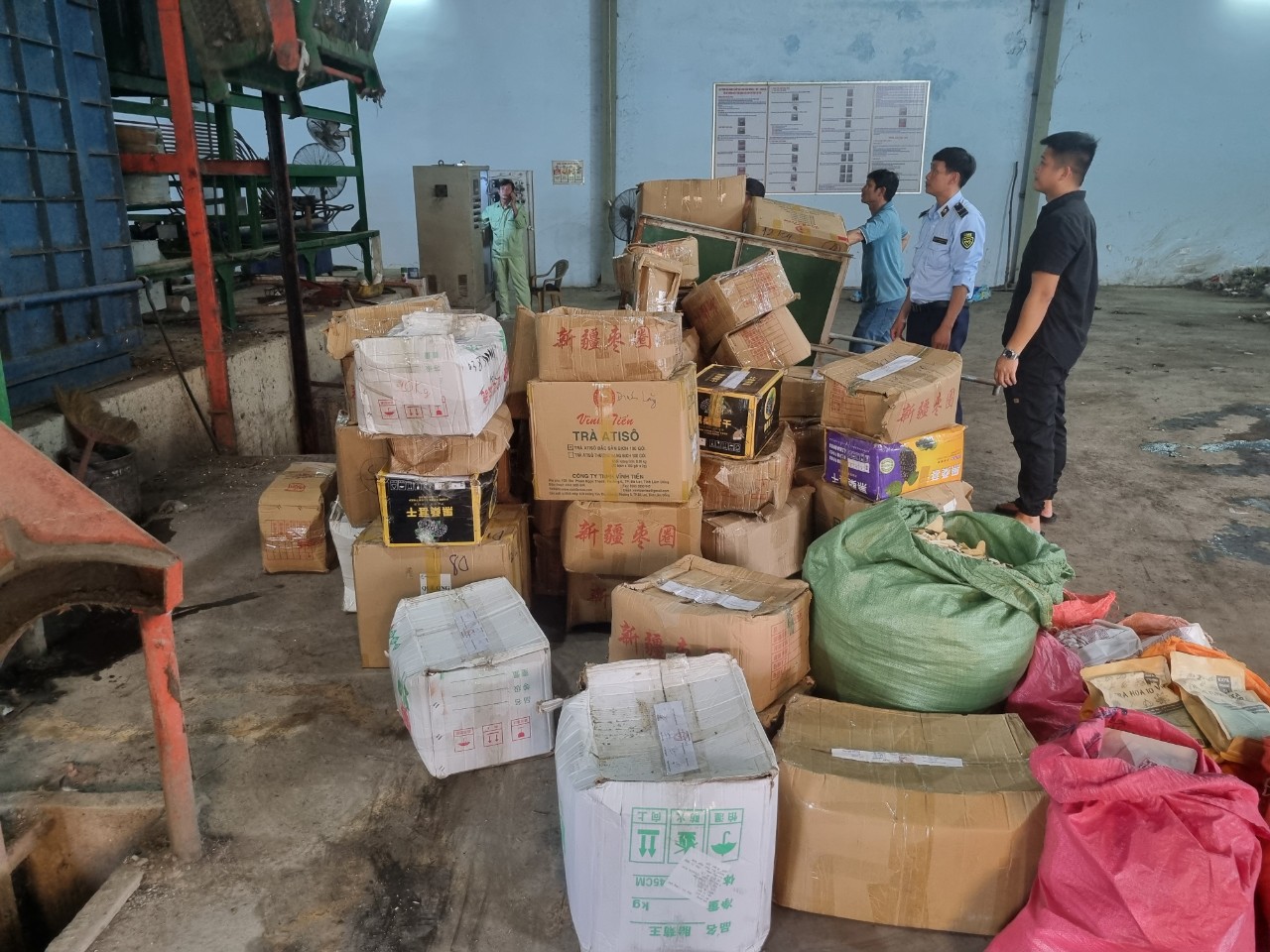 Đoàn Kiểm tra đã tiến hành tạm giữ, niêm phong 517 túi trà thành phẩm, 43 kg hàng hóa bán thành phẩm và 1.773kg nguyên liệu dùng để sản xuất hàng hóa, trong đó: 1.270 kg nguyên liệu có nhãn gốc bằng tiếng nước ngoài không có nhãn phụ bằng tiếng Việt Nam và 503 kg nguyên liệu không ghi nhãn theo quy định.