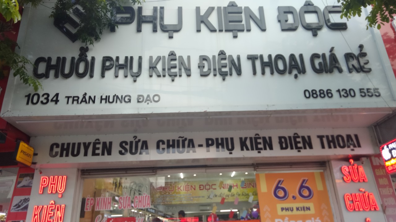 Cửa hàng phụ kiện điện thoại mang thương hiệu Độc tại thành phố Ninh Bình.