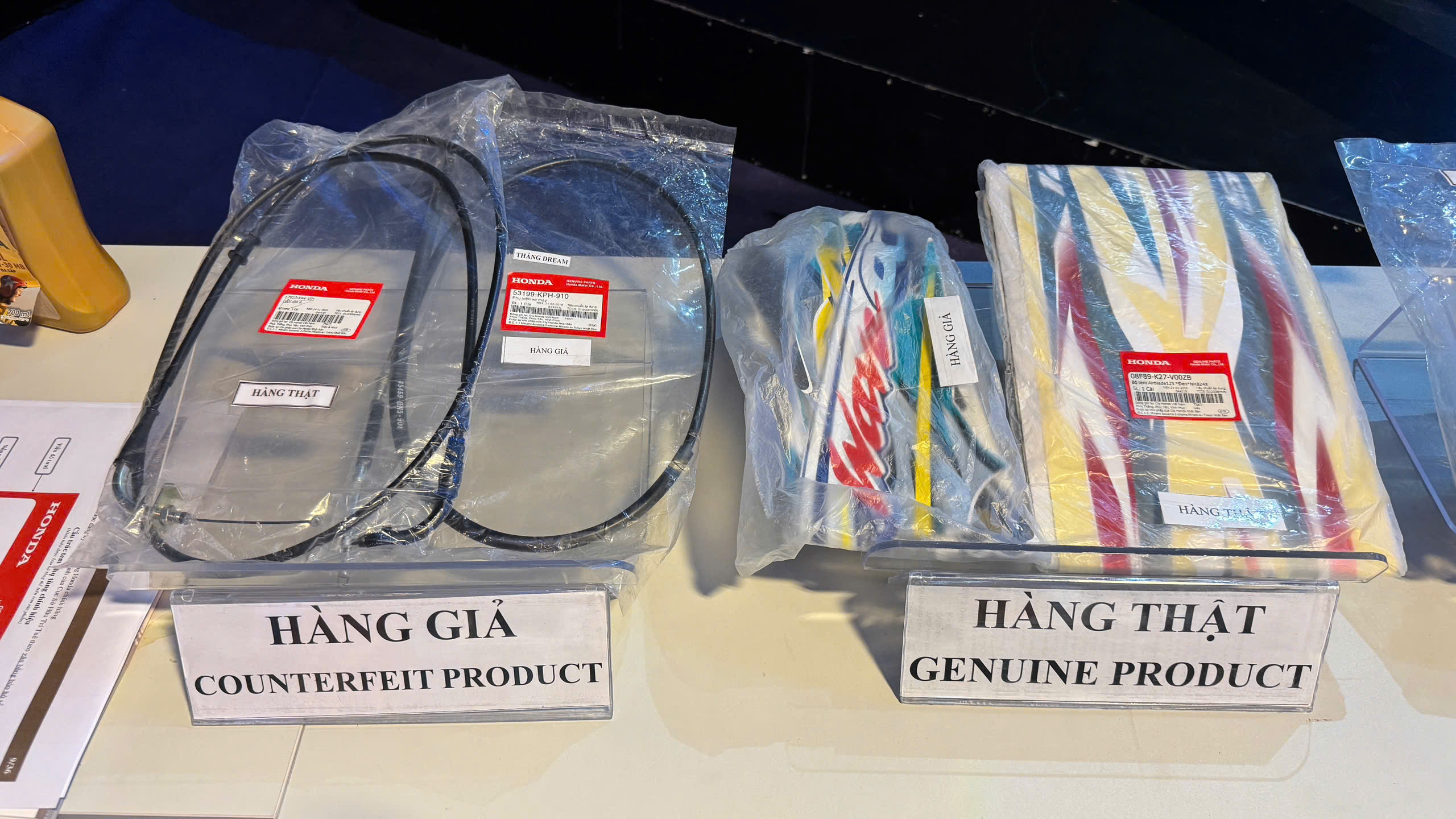 Nếu đội mũ kém chất lượng là mối đe dọa trực tiếp khi tham gia giao thông bằng xe máy, thì phụ tùng xe máy giả là những "ẩn họa dưới bánh xe". Nếu người tiêu dùng sửa chữa, thay thế phải phụ tùng giả, đặc biệt là phụ tùng mang tính năng an toàn như má phanh, lốp, nhông xích, và dây đai, … không những ảnh hưởng đến tuổi thọ của xe mà còn ảnh hưởng trực tiếp đến an toán sức khỏe, tính mạng khi vận hành xe không đủ điều kiện an toàn. Tình trạng làm giả phụ tùng xe máy như má phanh, bugi, lốp xe, ắc quy, dầu nhớt… đang gia tăng với thủ đoạn tinh vi.