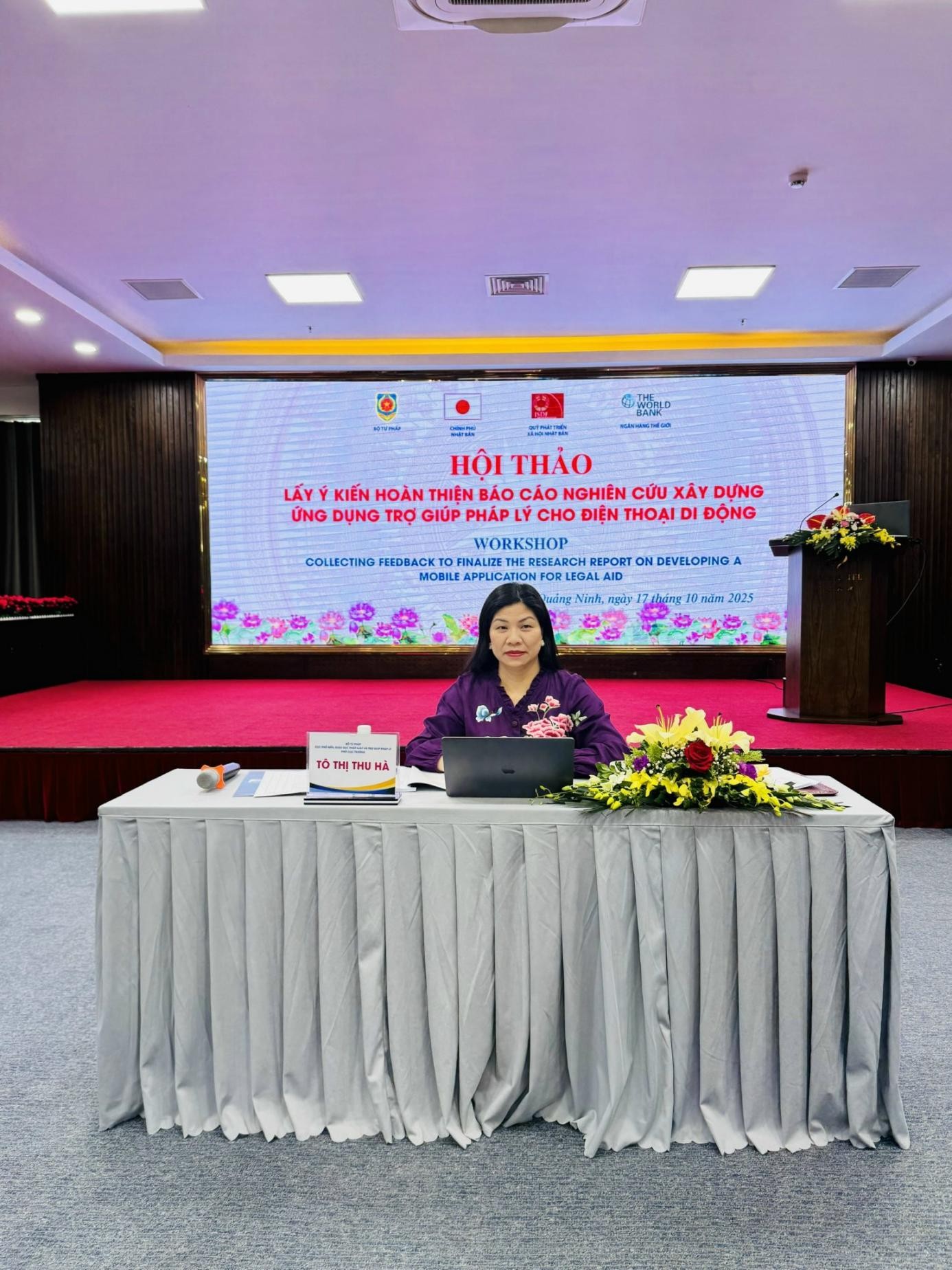 Hội thảo lấy ý kiến hoàn thiện Báo cáo nghiên cứu xây dựng ứng dụng trợ giúp pháp lý cho điện thoại di động do Cục Phổ biến giáo dục pháp luật và Trợ giúp pháp lý (Cục PB&TG) tổ chức tại Quảng Ninh với sự tham dự của các đại biểu đến từ các Trung tâm trợ giúp pháp lý nhà nước là các trợ giúp viên pháp lý (TGPL), cán bộ phụ trách công nghệ thông tin và một số cộng tác viên TGPL thuộc các tỉnh: Quảng Ninh, Lạng Sơn, Lào Cai, Lai Châu, Vĩnh Long, Phú Thọ, Hưng Yên, Bắc Ninh. Đây là hoạt động tiếp nối với hội thảo lần đầu được tổ chức tại thành phố Huế vào đầu tháng 10/2025.
