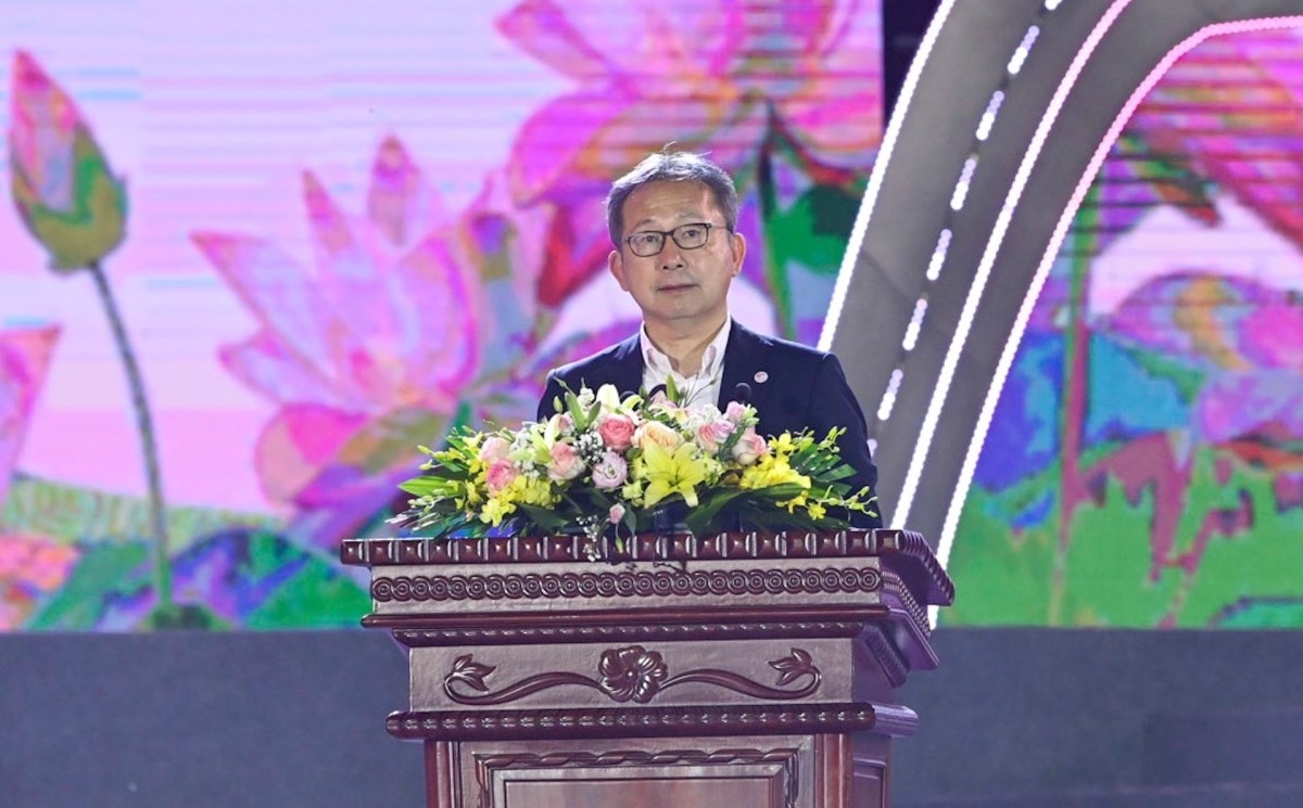 | Đại sứ Nhật Bản tại Việt Nam Yamada Takio phát biểu tại lễ khai mạc. (Ảnh: vov.vn) |