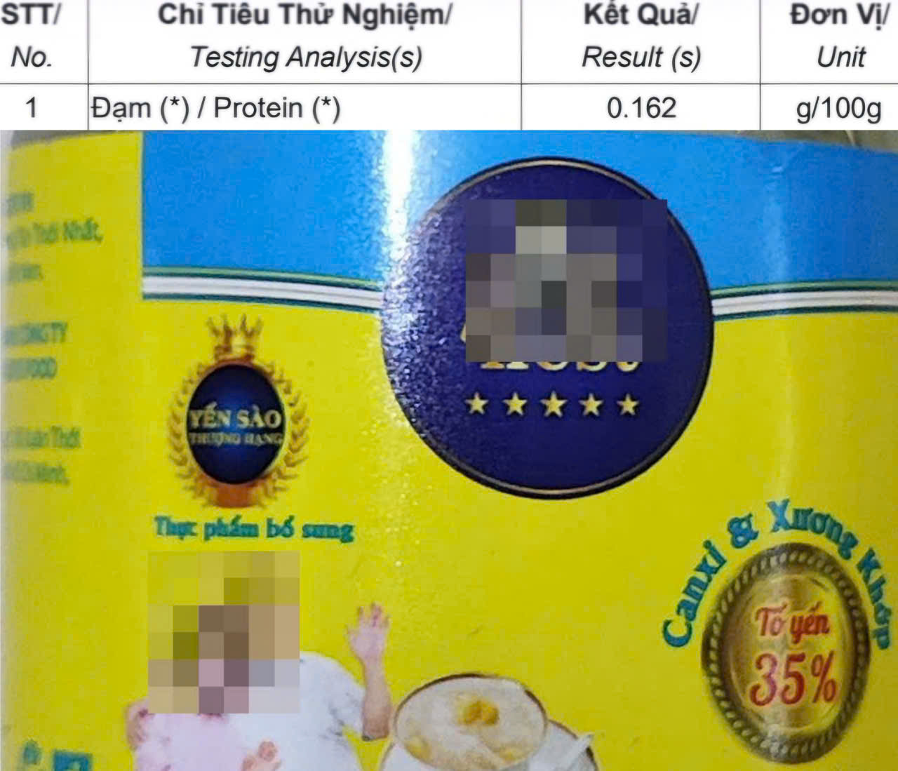 Các mẫu được gửi đến phòng thí nghiệm độc lập để định lượng hàm lượng protein (đạm) chỉ tiêu đặc trưng dùng để xác định lượng tổ yến thực sự có trong sản phẩm. Kết quả khiến nhiều người sửng sốt.