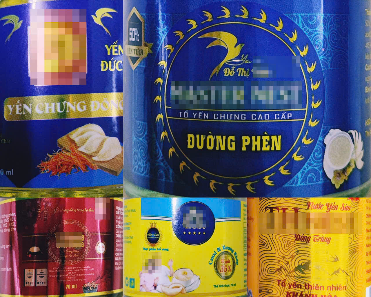 Trong quý I năm 2025, Quỹ Chống hàng giả phối hợp với nhóm người tiêu dùng tại Hà Nội, TP.HCM và Đà Nẵng đã tiến hành thu mua ngẫu nhiên 5 mẫu sản phẩm yến hũ từ các thương hiệu phổ biến trên thị trường. Tất cả đều là sản phẩm có ghi rõ trên nhãn tỷ lệ yến từ 35% yến tươi (yến sợi) đến 50% tươi (yến sợi), dung tích phổ biến là 70ml/hũ.