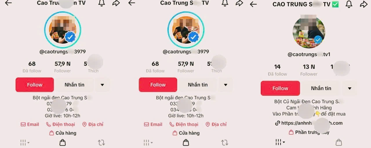 Các tài khoản mạng xã hội TikTok được cho là có hình ảnh của người dẫn truyện Cao Anh T.