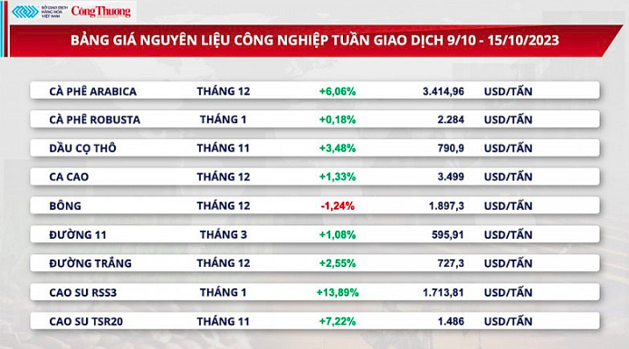 Thống kê từ Sở Giao dịch hàng hoá Việt Nam (MXV), thị trường cà phê là điểm sáng đáng chú ý trong tuần. Trong đó, giá Arabica bật tăng mạnh hơn 6%, trong khi giá Robusta phục hồi 0,18% so với tham chiếu. Theo MXV, xuất khẩu cà phê tại Brazil bất ngờ giảm trong tháng 9 tại Brazil kết hợp cùng việc đồng Real mạnh lên đã hỗ trợ giá.