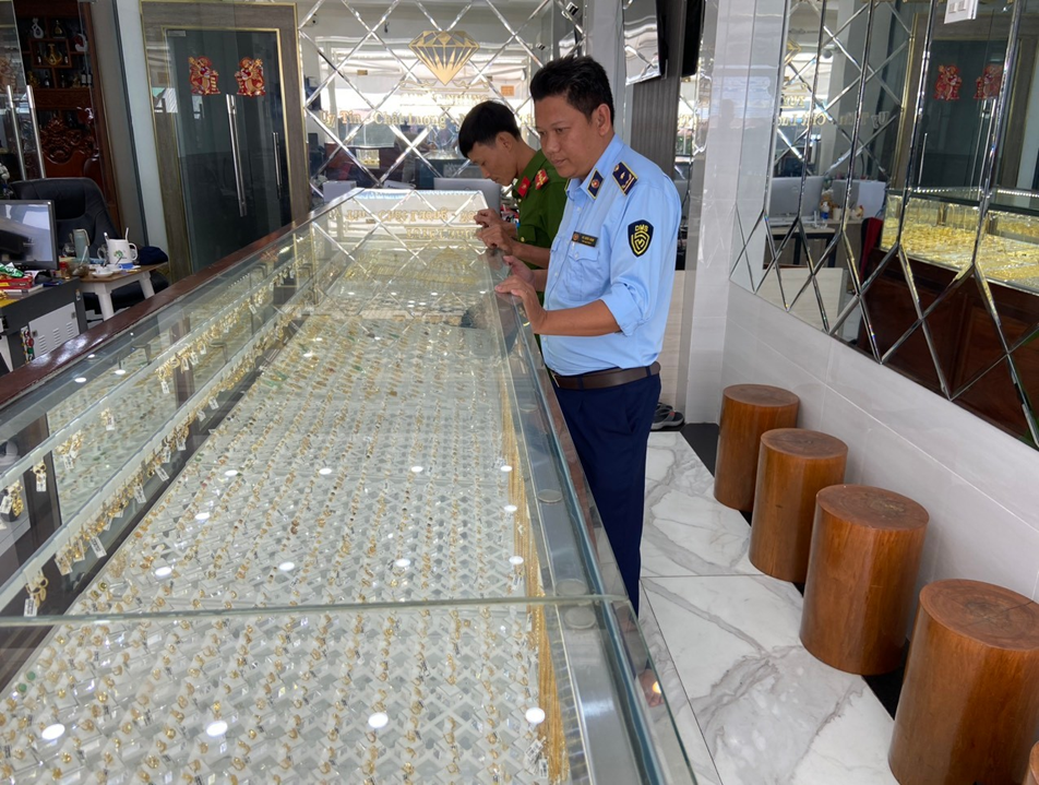 Lực lượng chức năng kiểm tra tại doanh nghiệp kinh doanh vàng bạc, đồ trang sức..Trước đó, Đội QLTT số 1, Cục QLTT Kiên Giang cũng thực hiện kiểm tra 10 doanh nghiệp kinh doanh vàng bạc, đồ trang sức trên địa bàn tỉnh Kiên Giang vi phạm về nhãn hiệu hàng hoá, xử phạt vi phạm hành chính gần 1,2 tỷ đồng, tang vật vi phạm có tổng giá trị hơn 770 triệu đồng.