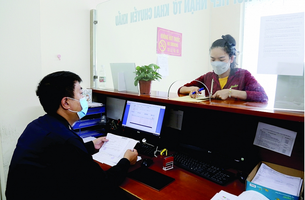 Công chức Chi cục Hải quan Tân Thanh (Cục Hải quan Lạng Sơn) hướng dẫn doanh nghiệp làm thủ tục xuất khẩu hàng hóa. Ảnh: H.Nụ