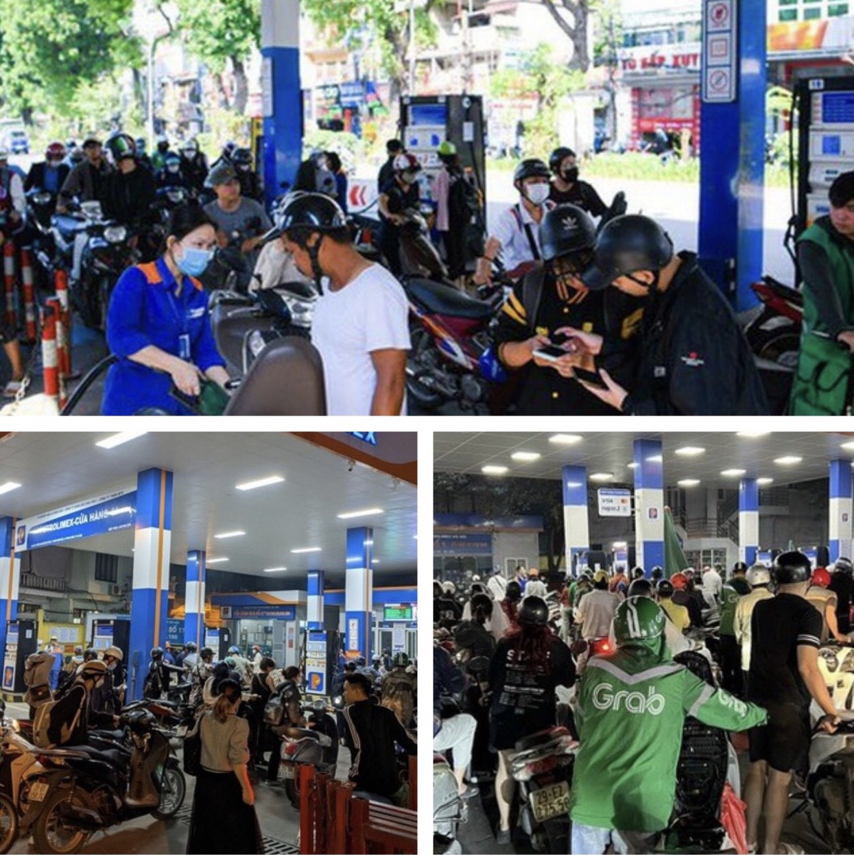 Người dân xếp hàng mua xăng trước giờ điều chỉnh giá.