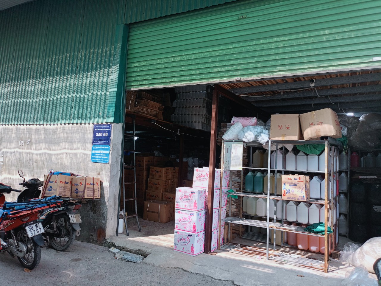 Qua quá trình khảo sát tại Công ty Sao Đỏ, phóng viên ghi nhận: nhà xưởng sản xuất của công ty này là khu nhà tạm (khoảng vài trăm mét vuông). Từ phía ngoài đi vào, hàng hóa thành phẩm, cùng chai lọ nhựa và các loại vỏ thùng carton xếp la liệt, chất đống ngổn ngang, có đoạn xếp cao chạm đến nóc nhà, tràn cả vào khu vực văn phòng của công ty, nhìn rất mất an toàn về công tác phòng, chống cháy nổ.