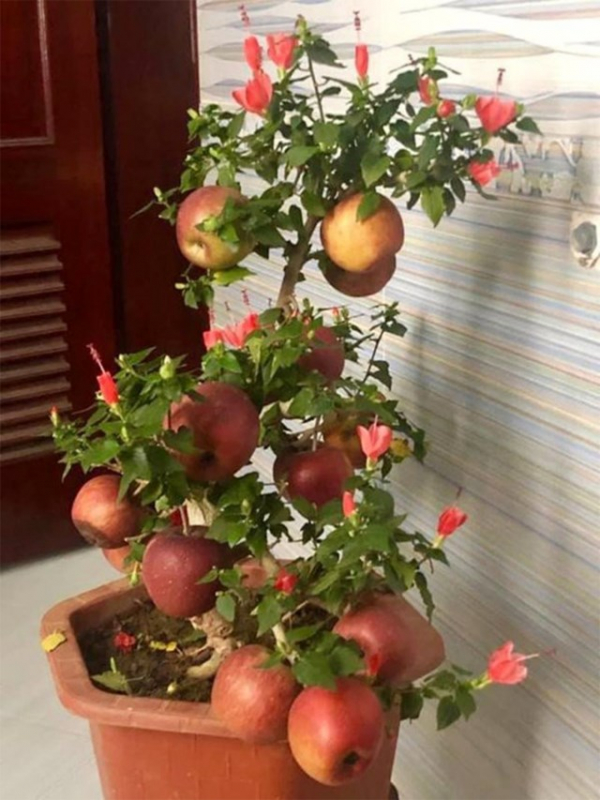 Hình ảnh cây táo giả được thực hiện bằng cách gắn những quả táo lên cây hoa dâm đã từng phổ biến những năm trước. Ảnh Internet.